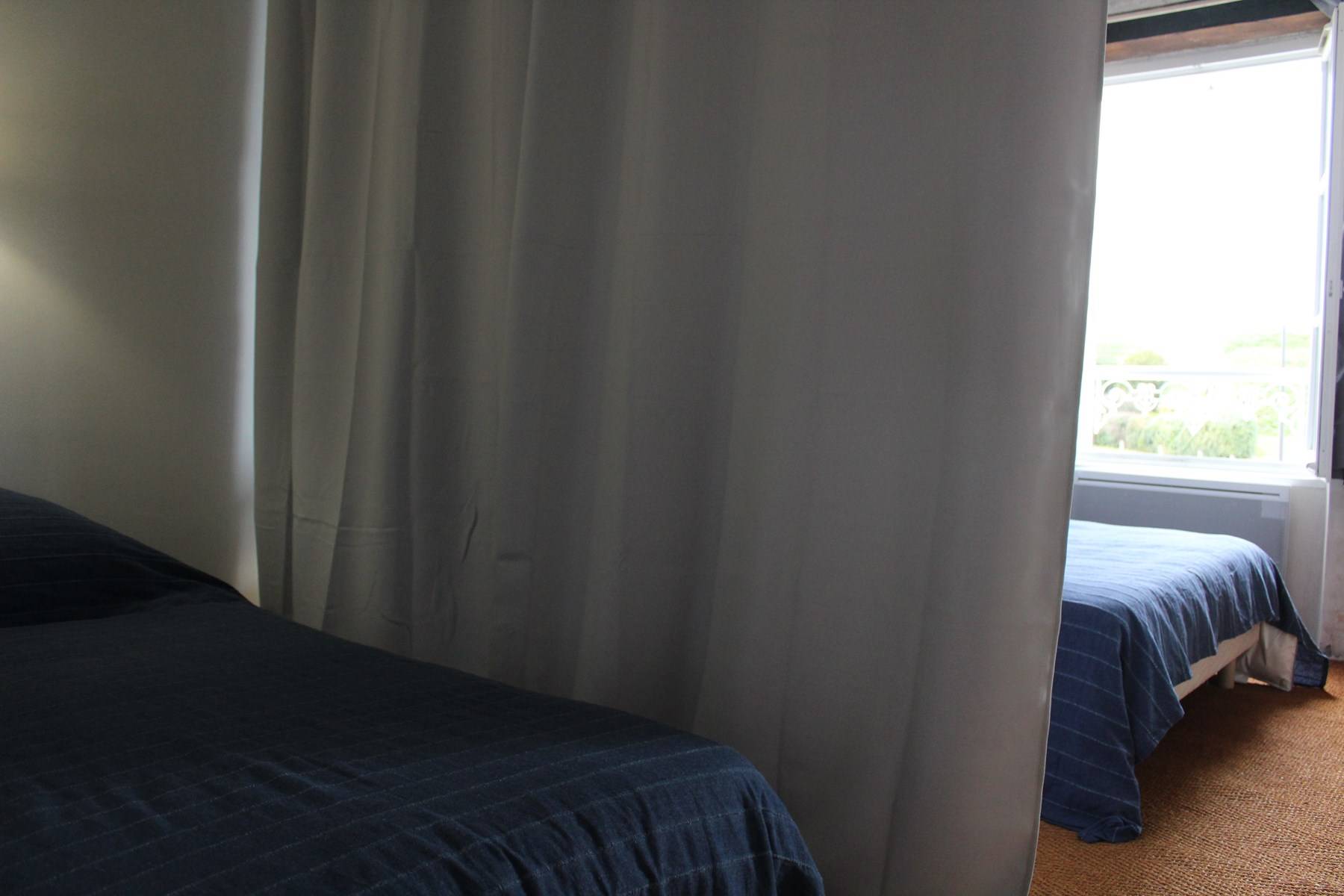 Le logement est au premier étage , il se compose d'un séjour avec coin cuisine entièrement équipée et aménagée avec micro-onde, plaques, lave-vaisselle, réfrigérateur/congélateur. Un coin salon avec canapé convertible et une télévision. Une chambre comprennant un lit en 140cm pour deux personnes et un lit de 90cm pour une personne (rideaux de séparation entre les deux couchages). Les W.C sont séparés dans la salle d'eau. Une autre salle de bain est également à disposition. Nombreux rangements au sein du logement.
