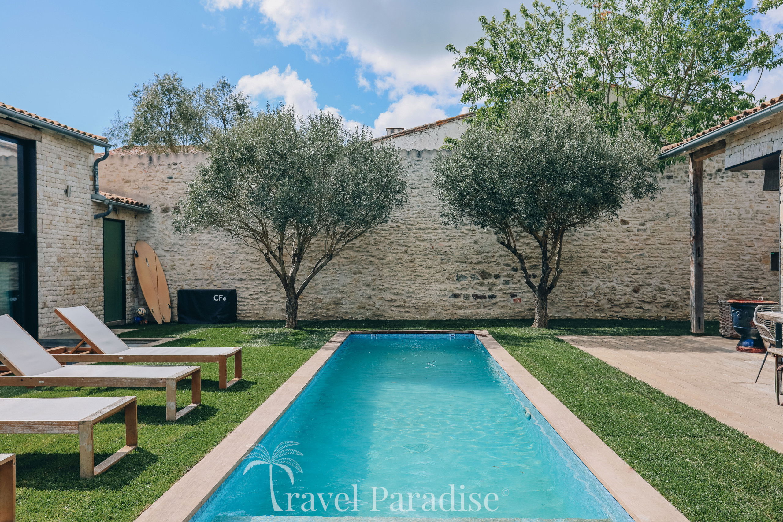 La villa situé sur l'île de Ré à Saint Martin vous séduira pour passer des vacances entre amis ou en famille. Sa grande piscine chauffée en mosaïque et ses espaces de vie entièrement ouverts sur l'extérieur fond de cette demeure un lieu atypique.