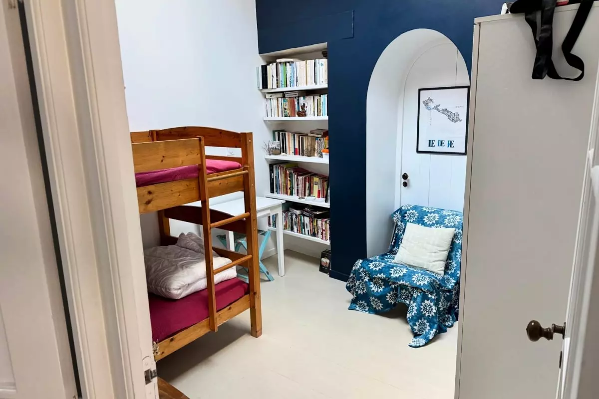 - Trois chambres : une belle chambre à l’étage (lit 140 cm), avec vue dégagée et un petit coin toilette, une chambre au RDC (lit 120 cm) et une chambre d'enfants au RDC (lits superposés).