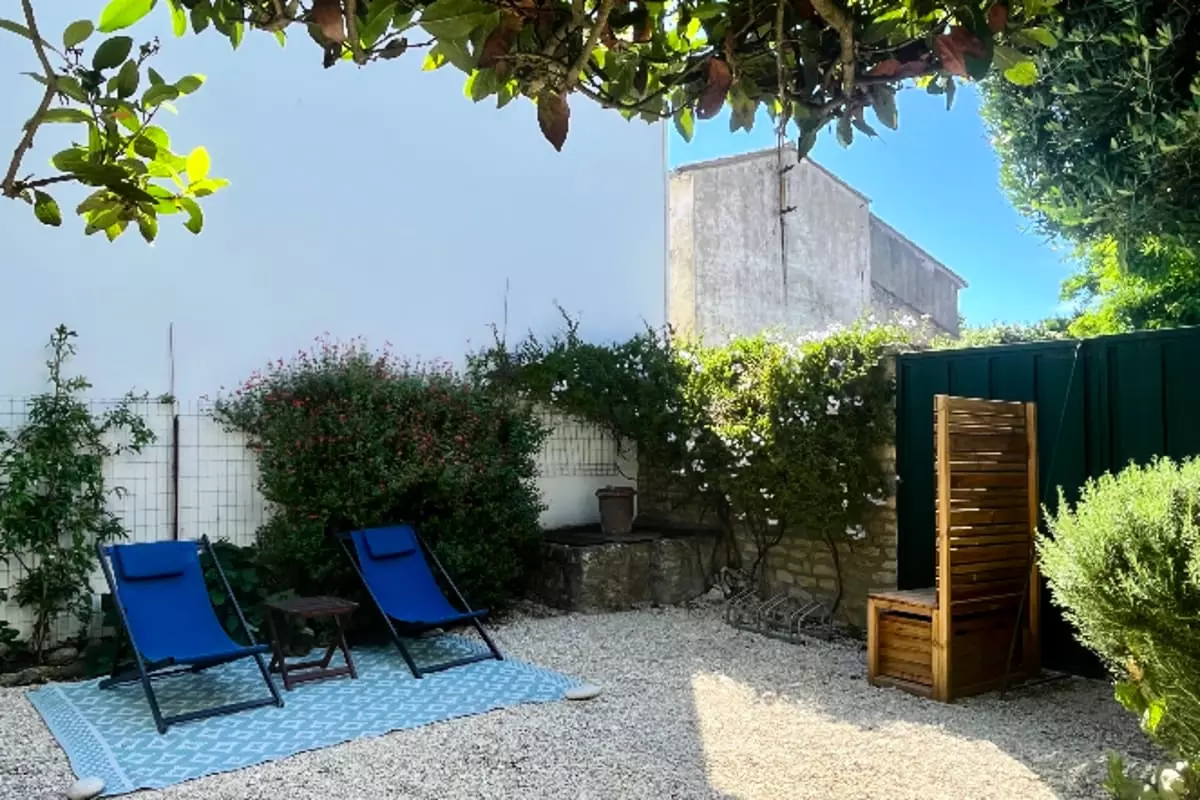 - un jardin paisible de 70 m² avec table, chaises, banc, transat et barbecue.