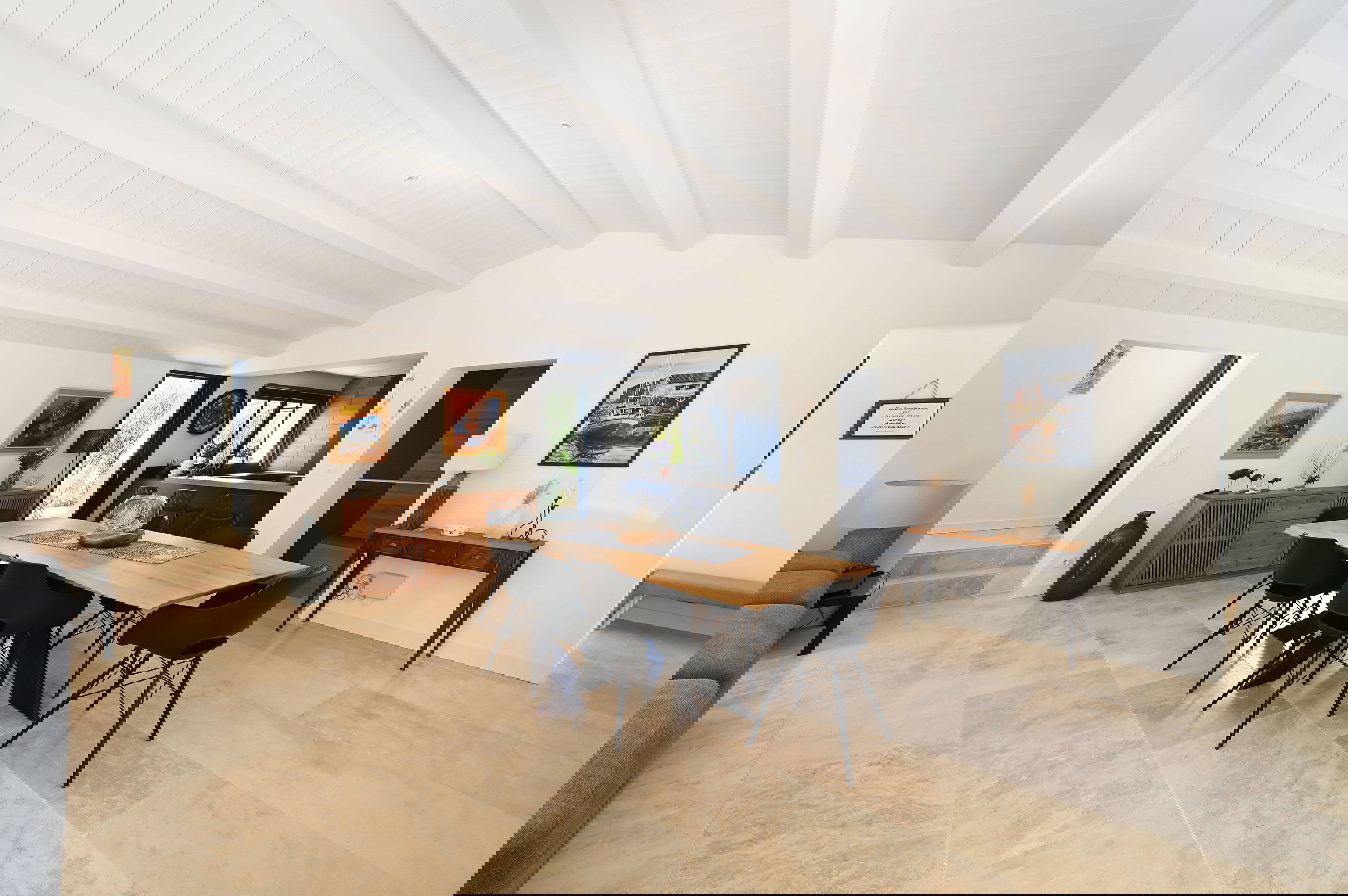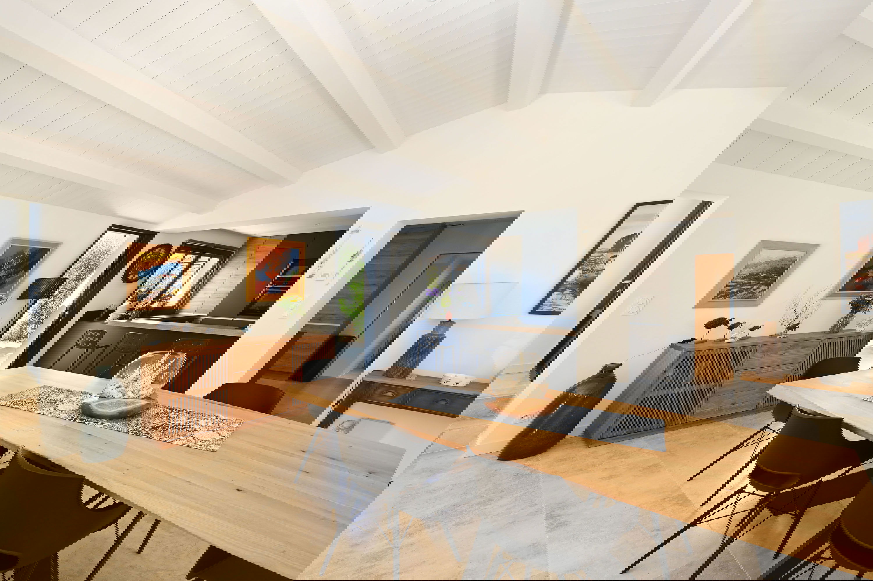 Cette pièce de vie spacieuse, lumineuse et conviviale donne directement sur le jardin avec terrasse et piscine chauffée.