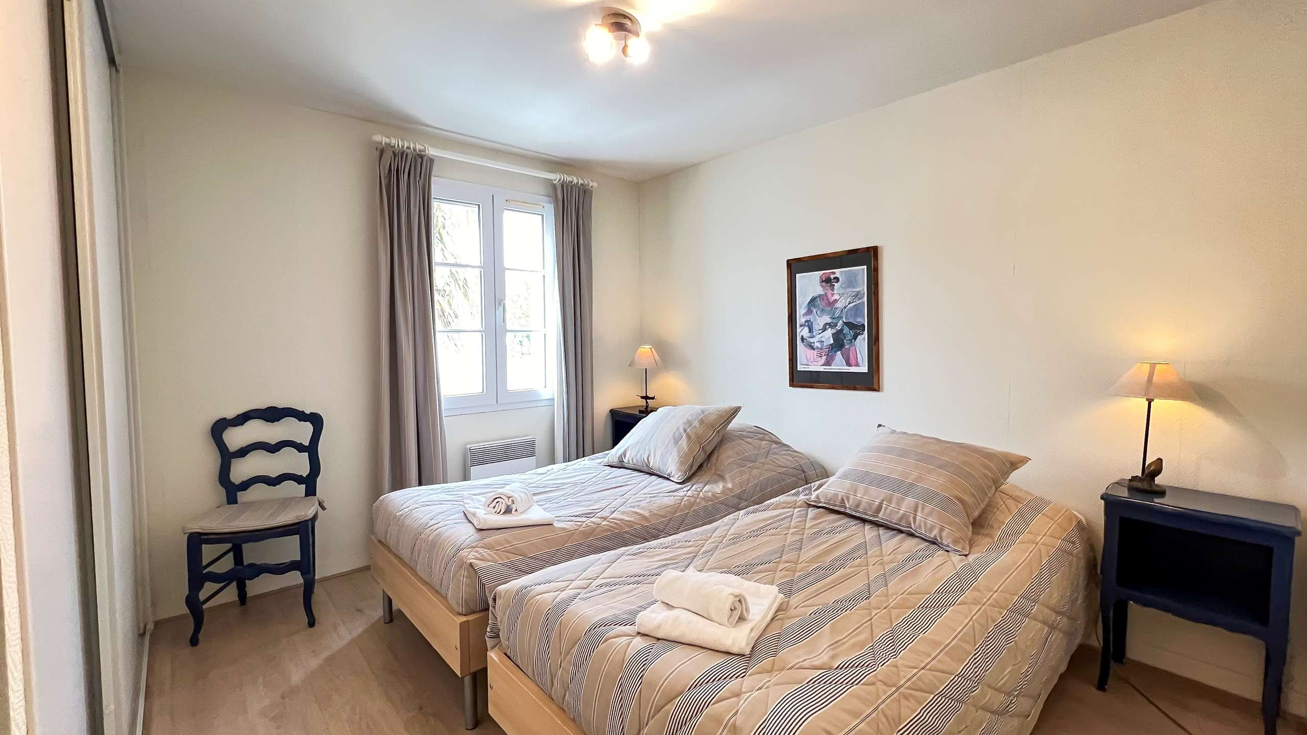 CHAMBRE 2: (sud) 9.5m², 2 lits 90, chevets, armoire, penderie.(+lit bébé)