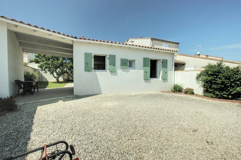 Côté rue, l'accès à la propriété se fait par un portail, et offre une facilité de parking pour 2 voitures, moto ou vélos.