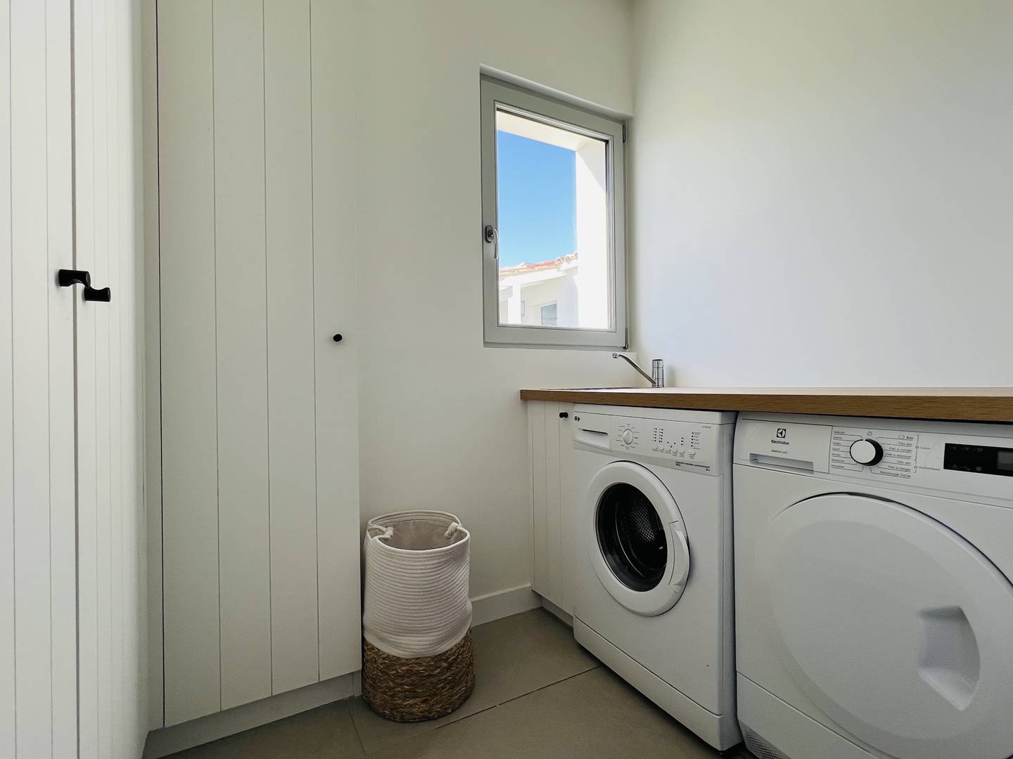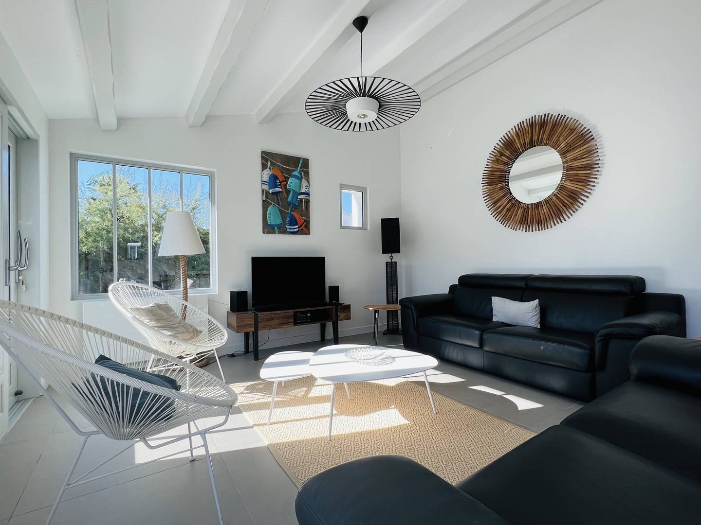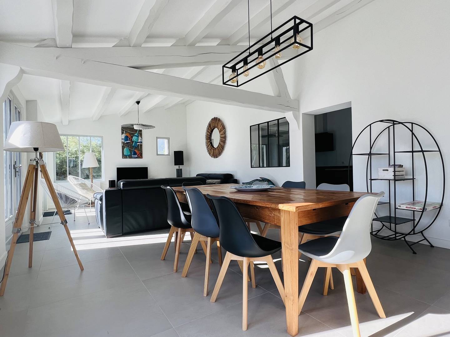 Cette villa d'architecte saura vous séduire avec son espace salon invitant à la convivialité et la cuisine aménagée parfaitement équipée. La villa présente de nombreux rangements et une buanderie avec lave-linge et sèche-linge.