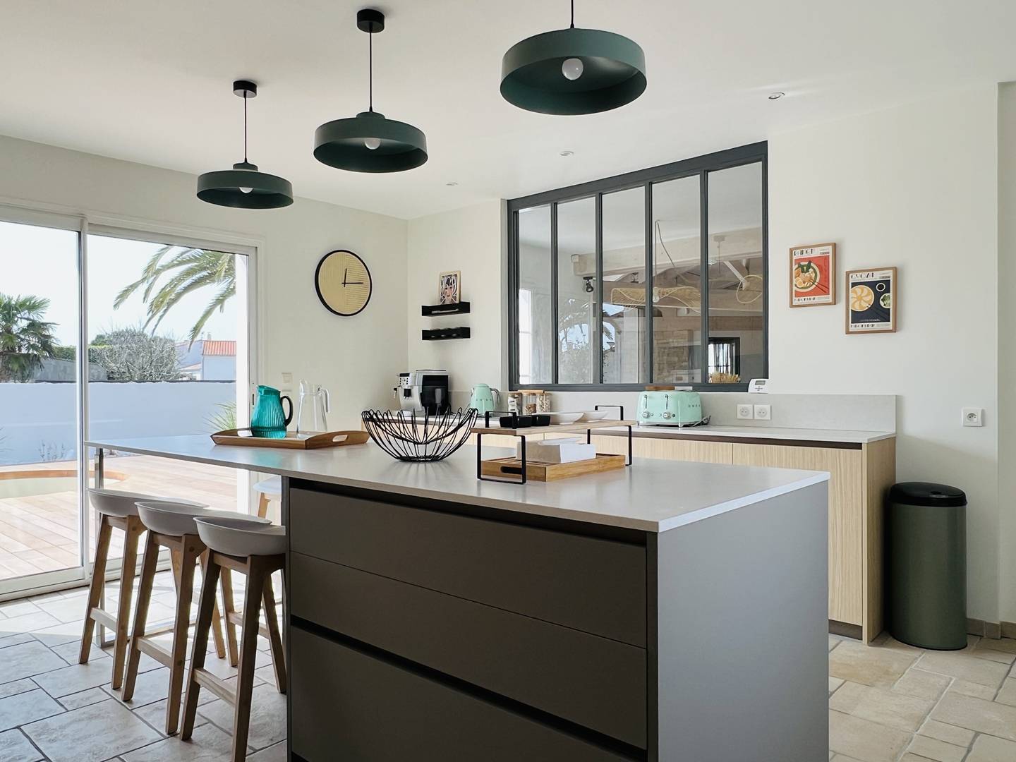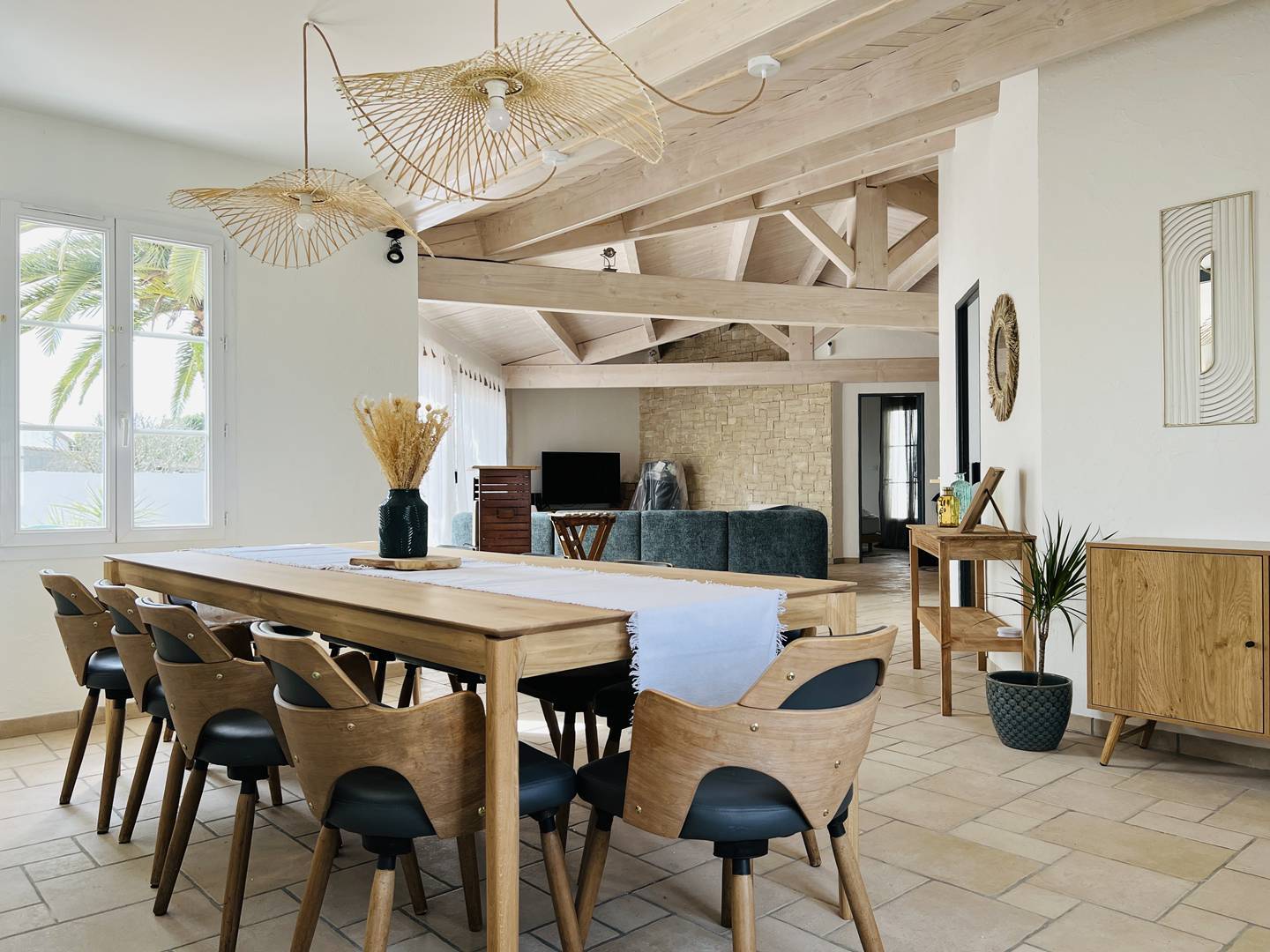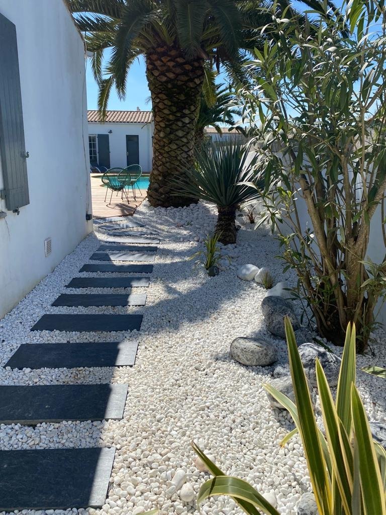 Située dans le joli village de Bois-Plage. Vous apprécierez son confort, ses équipements de qualité, sa décoration soignée dans des teintes naturelles, et le superbe espace extérieur avec sa piscine et ses deux magnifiques palmiers. L'emplacement est idéal, proche de la plage et du centre du village. Une villa de plain-pied, agréable à vivre, composée d'un beau salon avec canapé d'angle, d'une salle à manger et d'une grande cuisine aménagée parfaitement équipée. Vous disposerez également d'une arrière-cuisine avec un deuxième réfrigérateur-congélateur, un lave-linge et un sèche-linge.