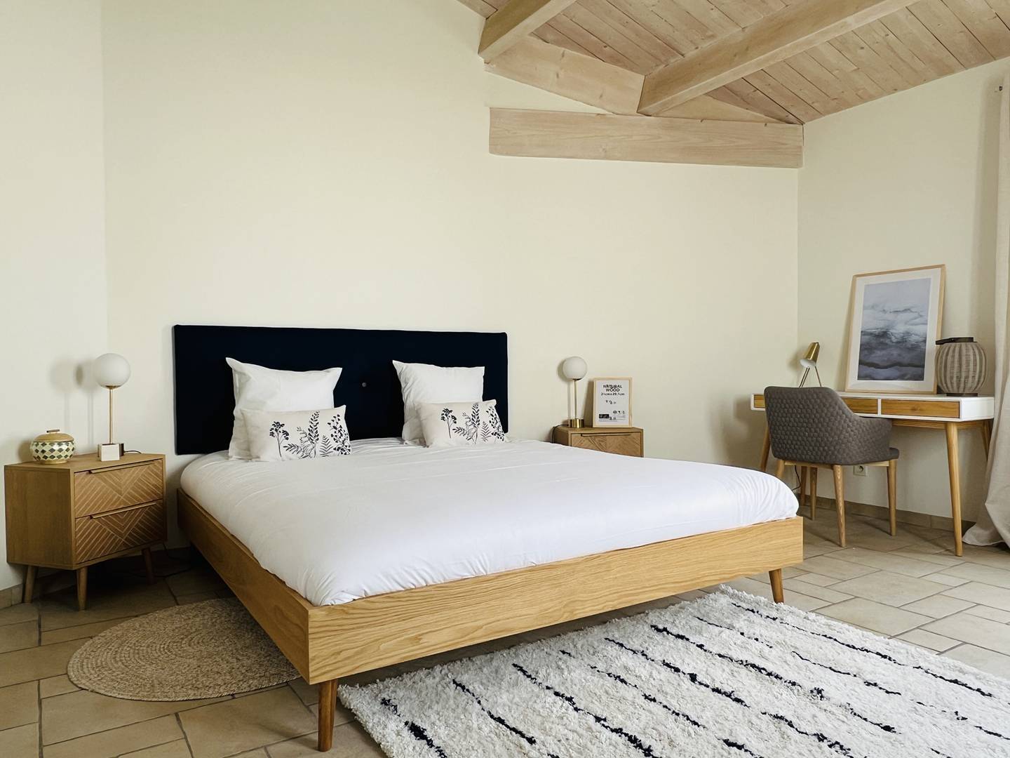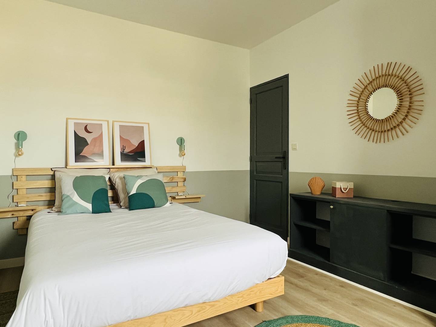 L'espace nuit permet d'accueillir 10 voyageurs. Il comprend cinq chambres dont deux suites parentales avec salle d'eau. Quatre chambres sont équipées d'un lit double (un lit 180x200 cm, deux lits 160x200 et un lit 140x190), et une chambre enfants est équipée de deux lits superposés et d'une salle d'eau. Une salle de bain indépendante avec baignoire est toujours appréciée pour les enfants.