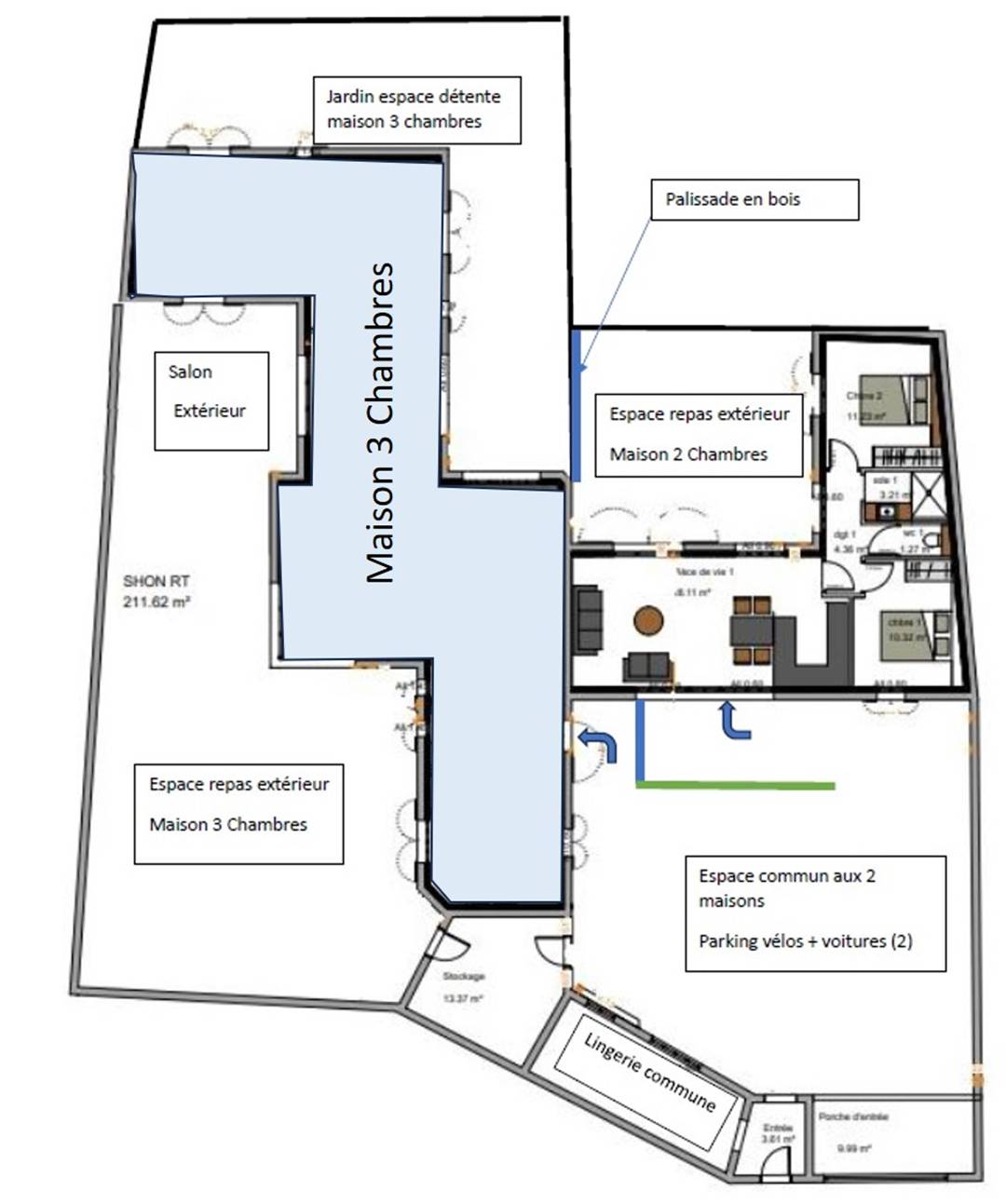 Une buanderie (commune aux 2 maisons) avec lave-linge et sèche-linge.