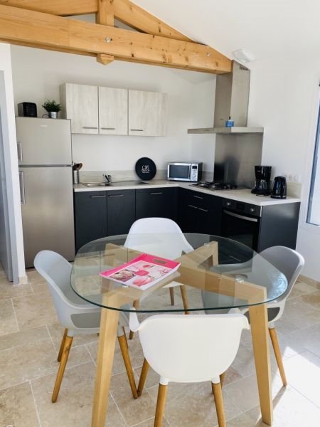 La cuisine est bien équipée avec four, micro-ondes, lave-vaisselle, réfrigérateur-congélateur.