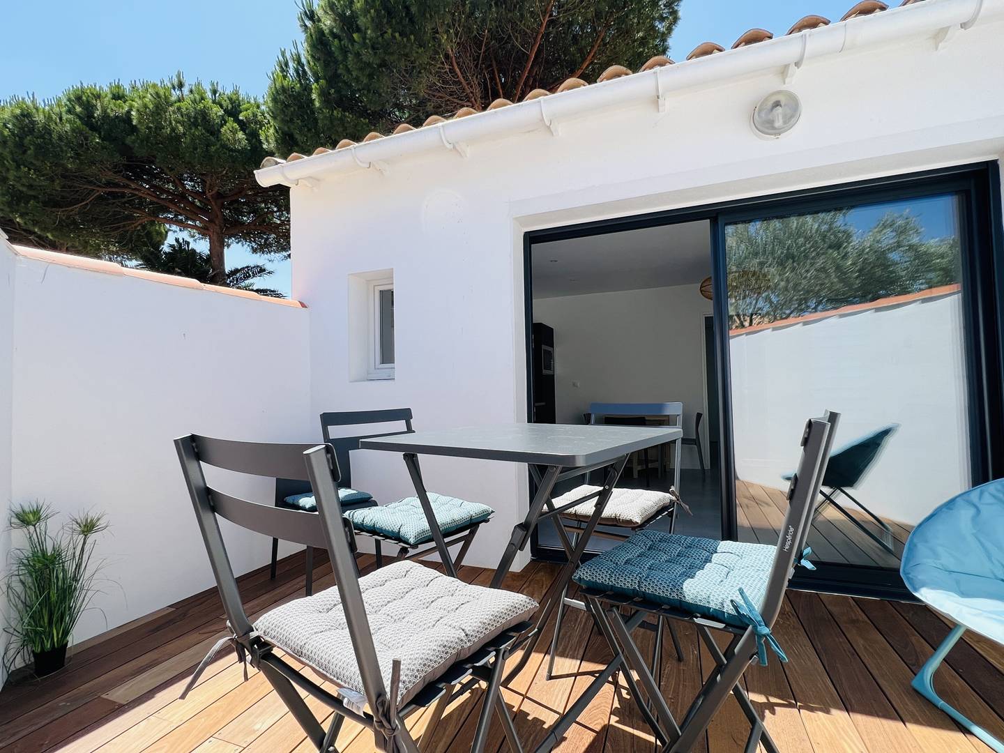 Maison joliment décorée, équipée avec soin pour votre confort, dans un environnement calme, proche de la plage, des pistes cyclables et du centre du charmant village de Bois-Plage ! L'entrée dessert une grande pièce de vie chaleureuse et lumineuse composée d'un espace salon et d'une cuisine aménagée équipée avec table à manger. La cuisine s'ouvre sur un premier espace extérieur avec table de jardin.