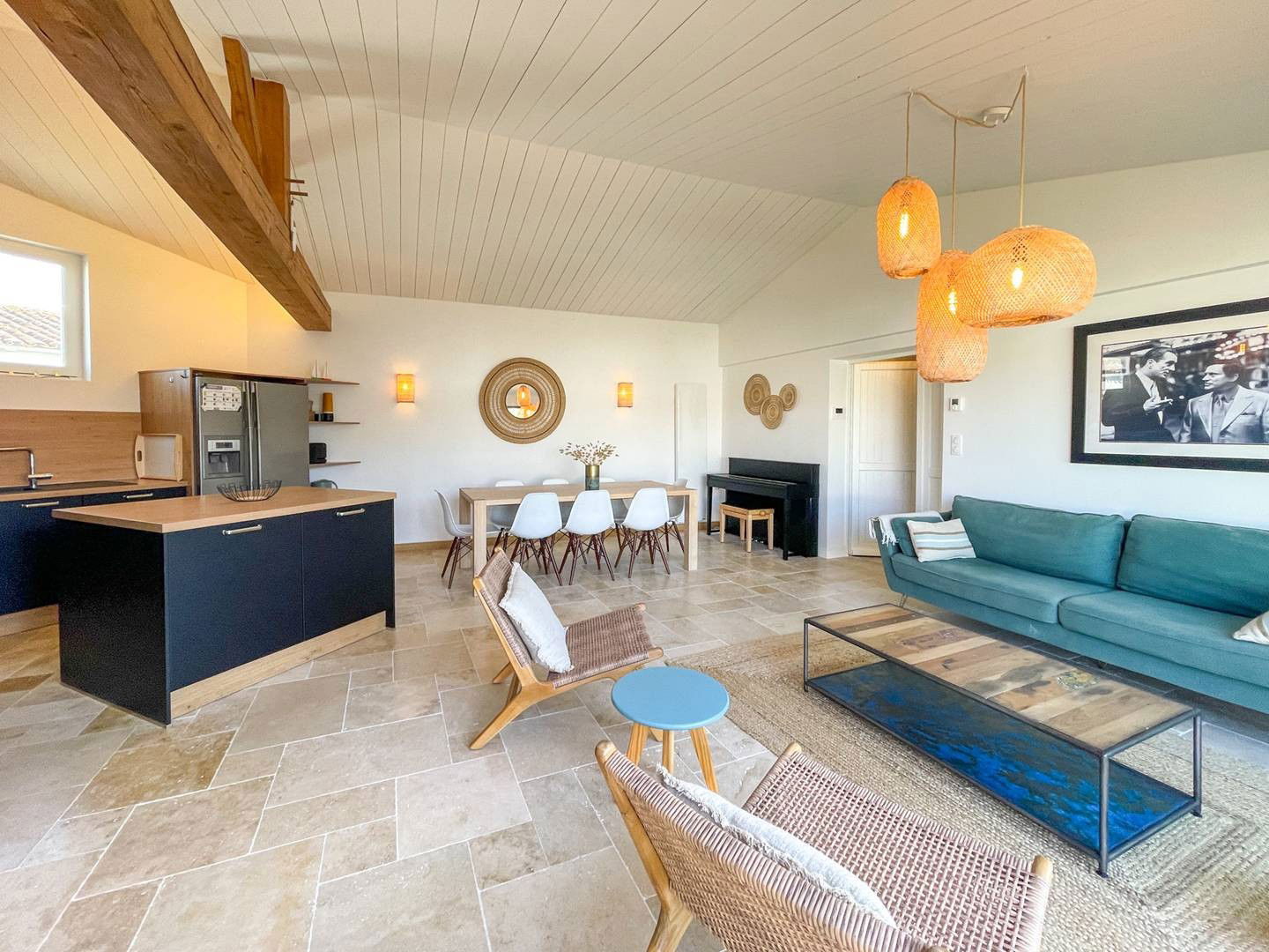 - Une cuisine américaine toute équipée et un ilot central