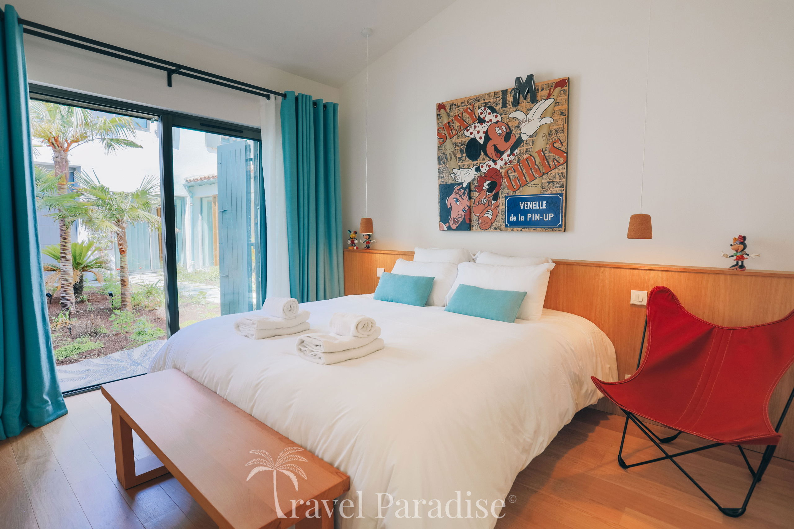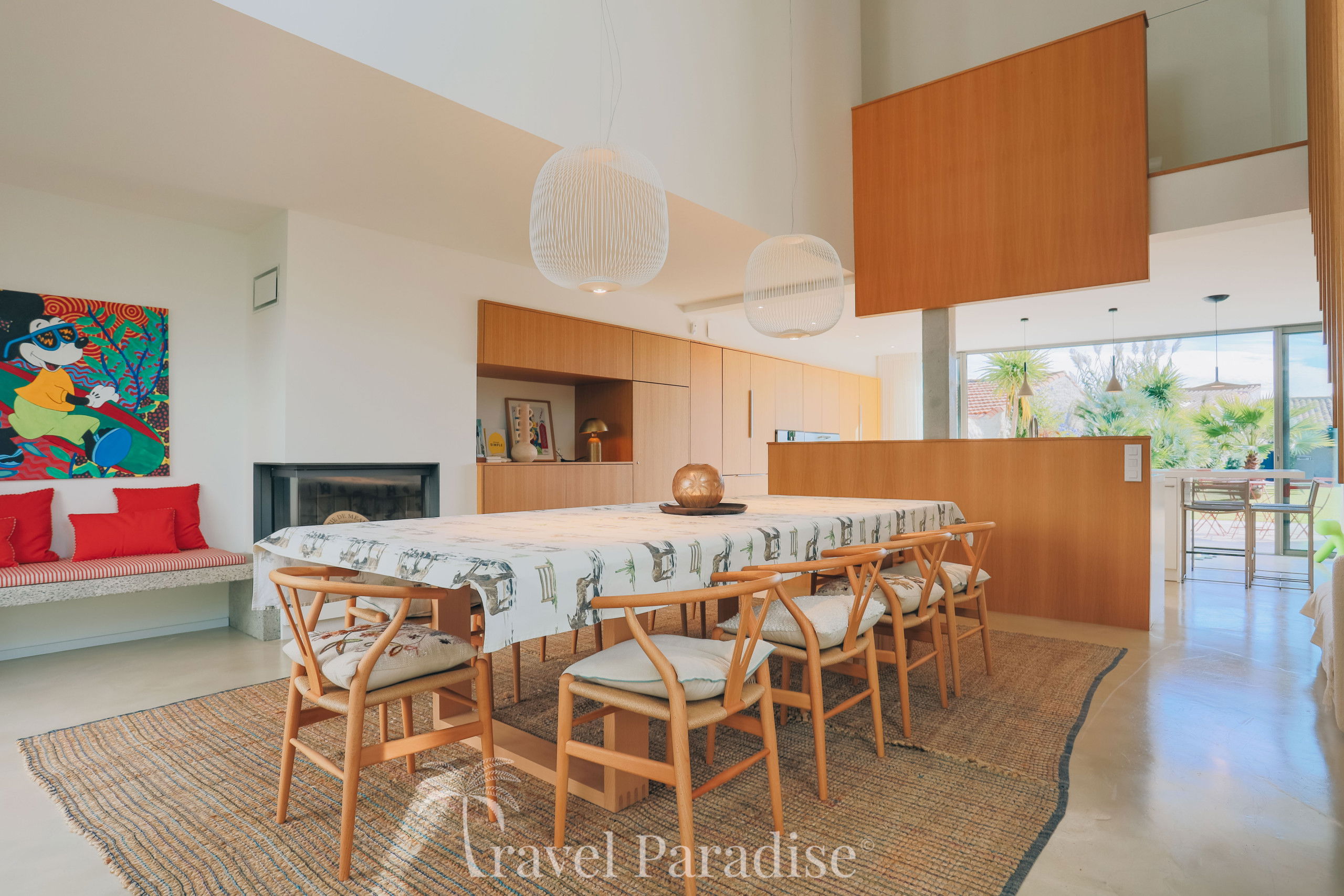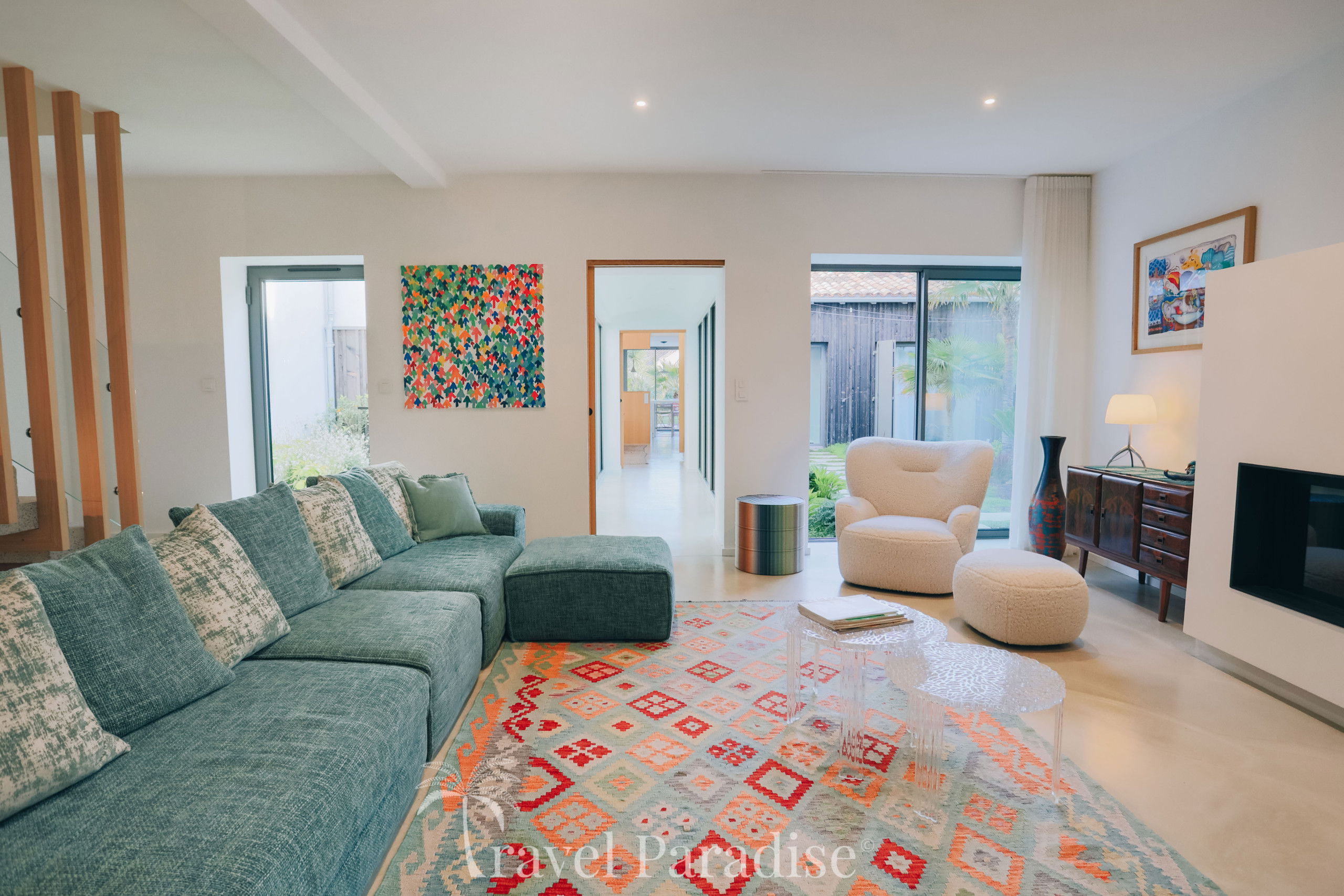 Avec ses 7 chambres spacieuses, la villa Saint-Exupéry peut accueillir confortablement jusqu'à 12 personnes, idéale pour des vacances aussi bien en famille qu’entre amis. La décoration intérieure allie touches artistiques et modernité pour créer une atmosphère à la fois chaleureuse et raffinée. Vous y trouverez un salon spacieux, une grande salle à manger conviviale, ainsi qu'une cuisine américaine entièrement équipée pour satisfaire toutes vos envies culinaires.
