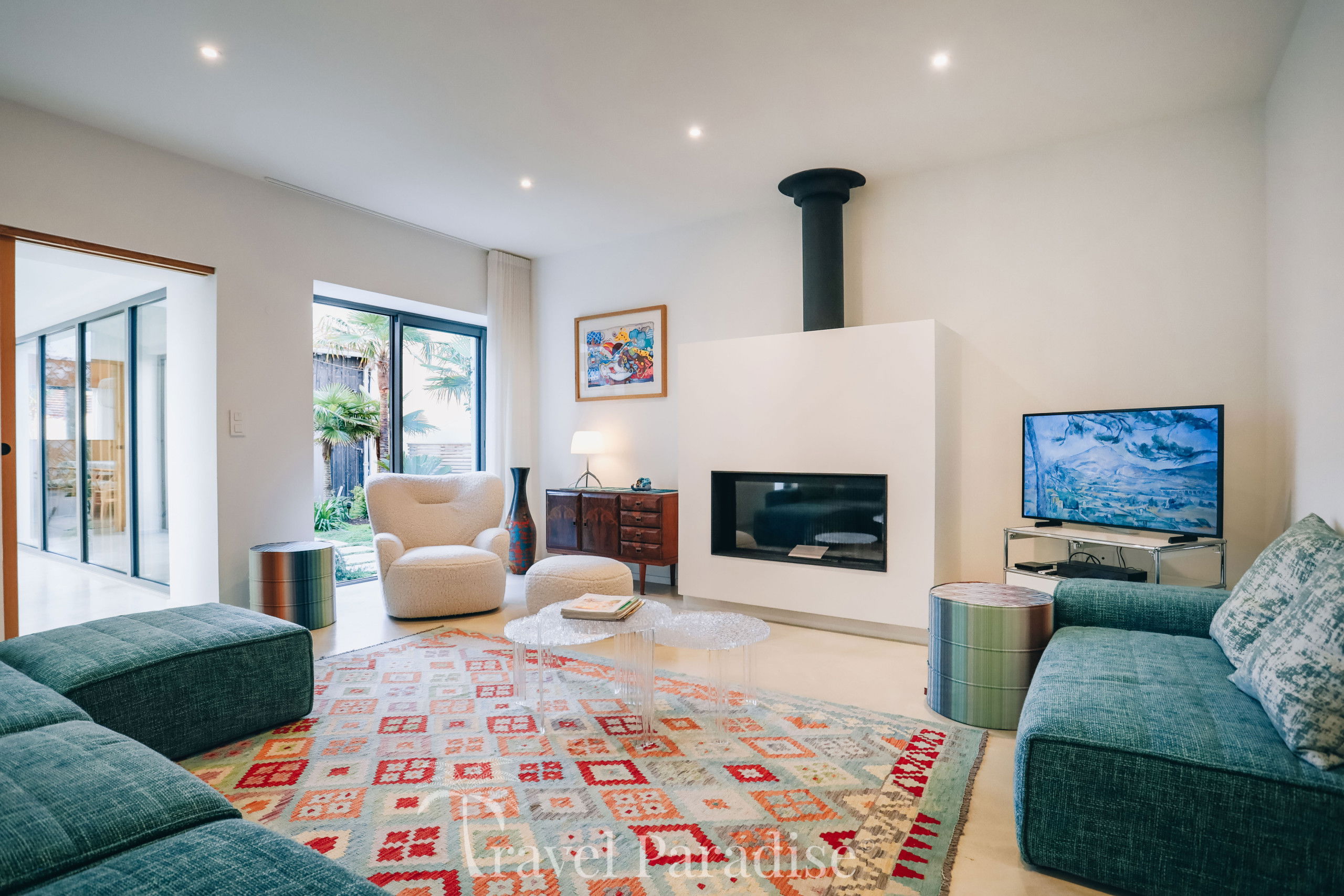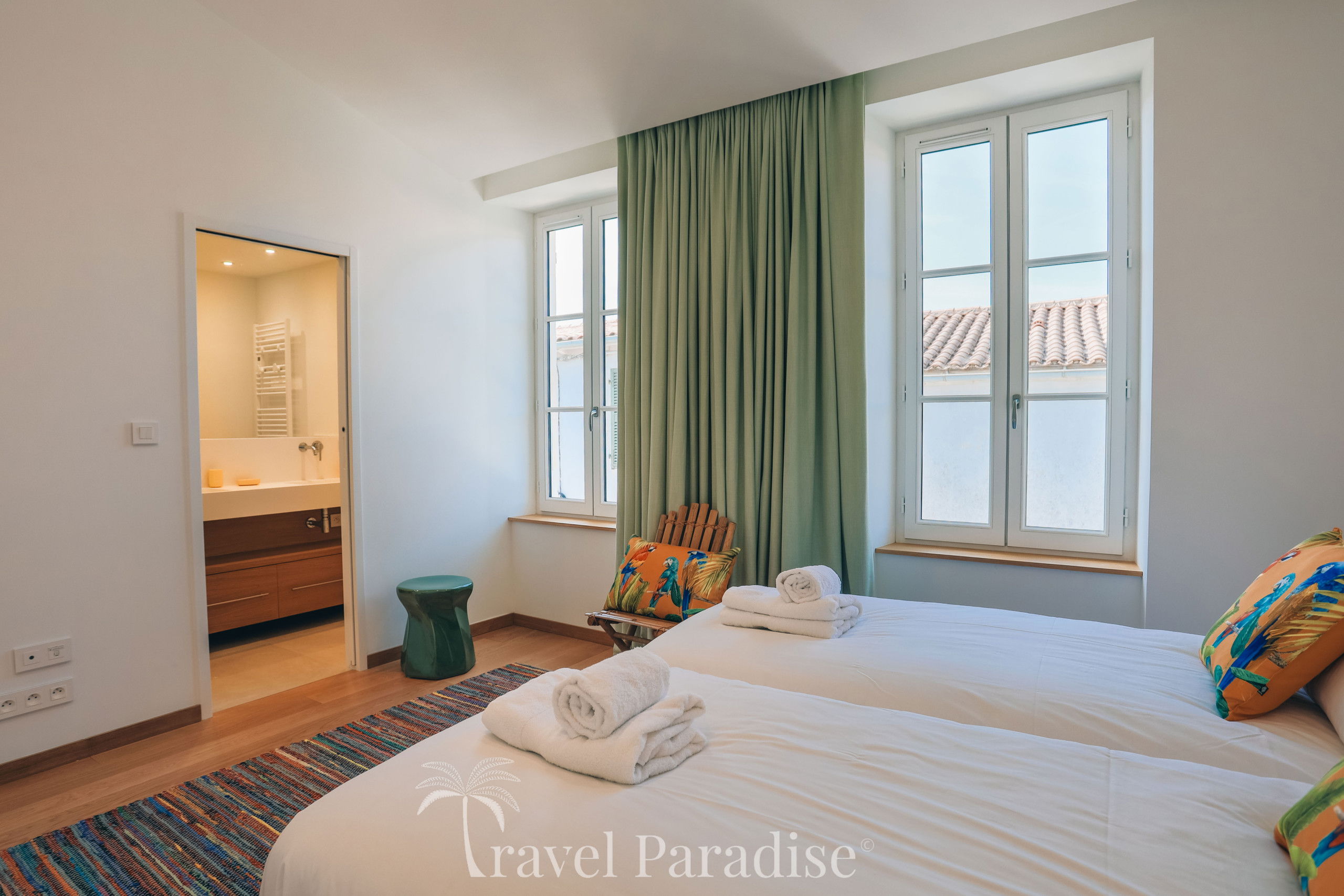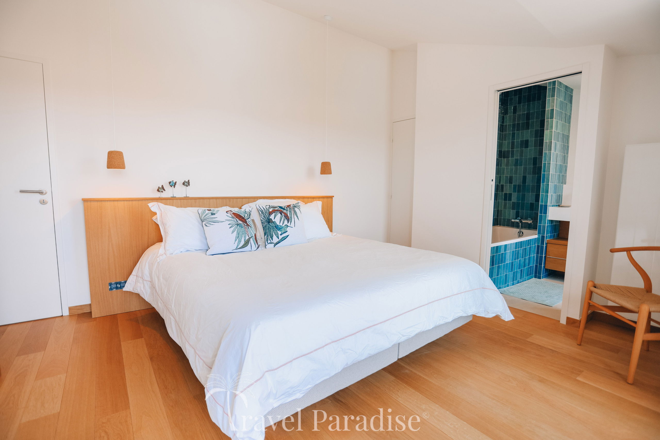 Avec ses 7 chambres spacieuses, la villa Saint-Exupéry peut accueillir confortablement jusqu'à 12 personnes, idéale pour des vacances aussi bien en famille qu’entre amis. La décoration intérieure allie touches artistiques et modernité pour créer une atmosphère à la fois chaleureuse et raffinée. Vous y trouverez un salon spacieux, une grande salle à manger conviviale, ainsi qu'une cuisine américaine entièrement équipée pour satisfaire toutes vos envies culinaires.