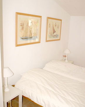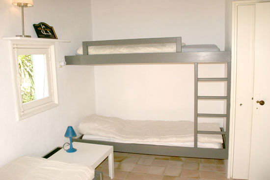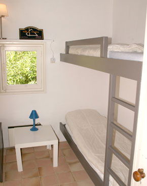 Chambre avec 2 Lits de 90 x 200, couettes, Bureau et Placard - Salle de Douche avec double Vasques - WC - Chambre Dortoir avec 4 Lits de 80 dont 1 Superposé (le couchage supérieur ne convient pas aux enfants de moins de 6 ans), couettes, Placard