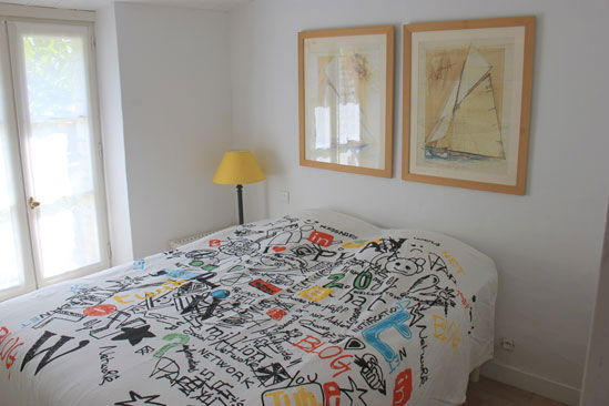 Chambre avec 1 Lit de 160 x 200 (2018), couette, Bureau et Placard (2007) - Salle de Douche avec Double Vasques et Wc