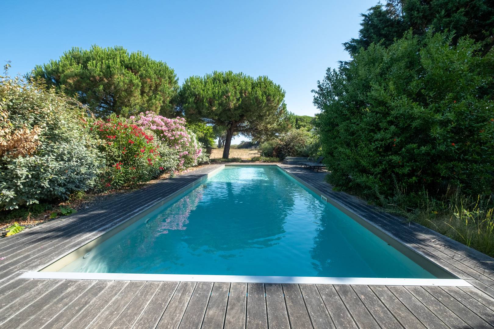 * Une piscine chauffée (de Mai à Septembre; Avril sur demande) privée de 15 mètres sécurisée par un volet roulant