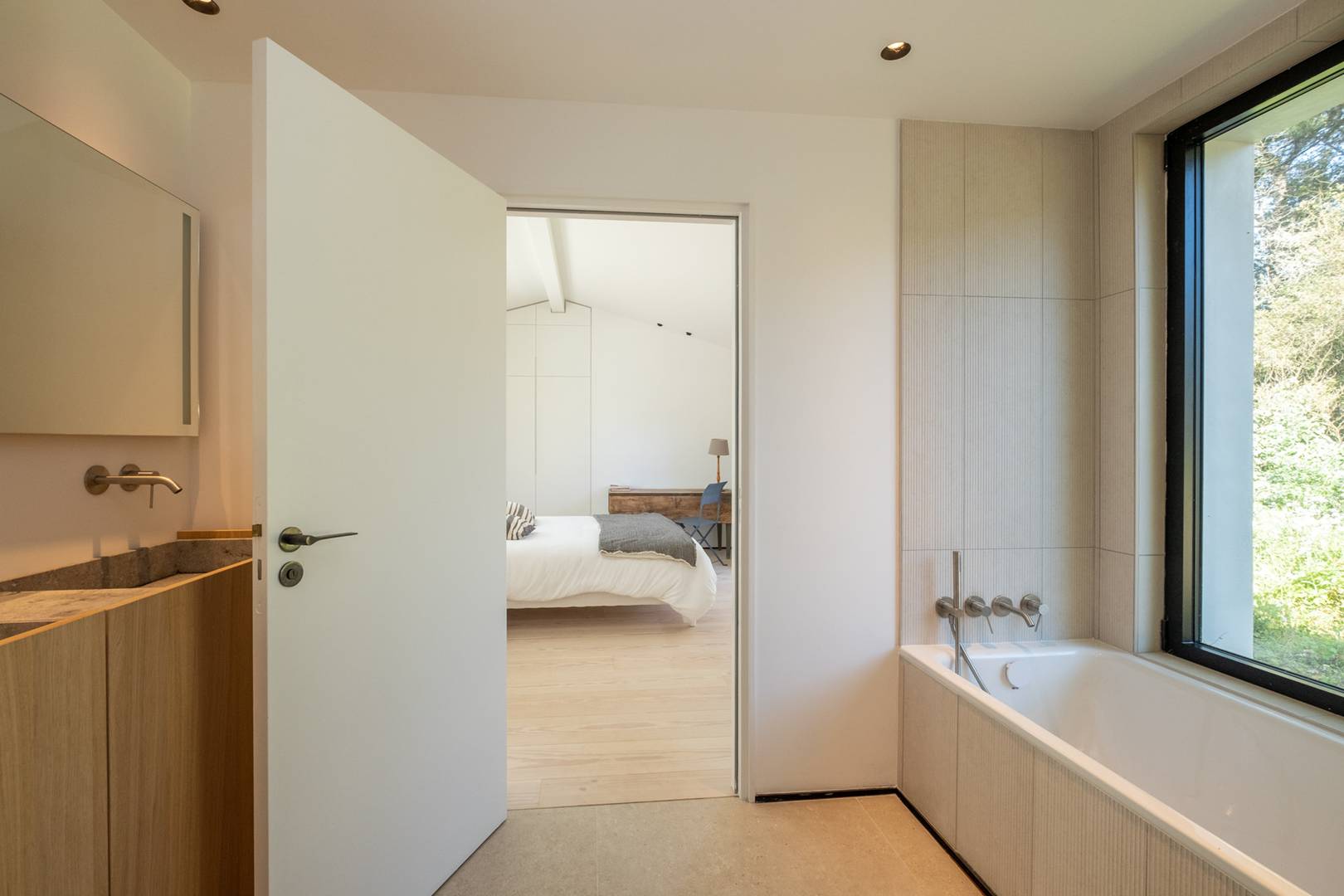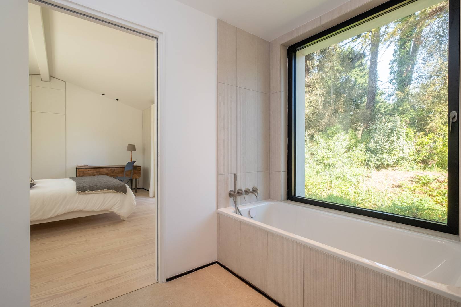 * Chambre 1 : Suite parentale donnant sur la piscine, lit 180cm, avec salle de bain privée (douche et baignoire), WC indépendant