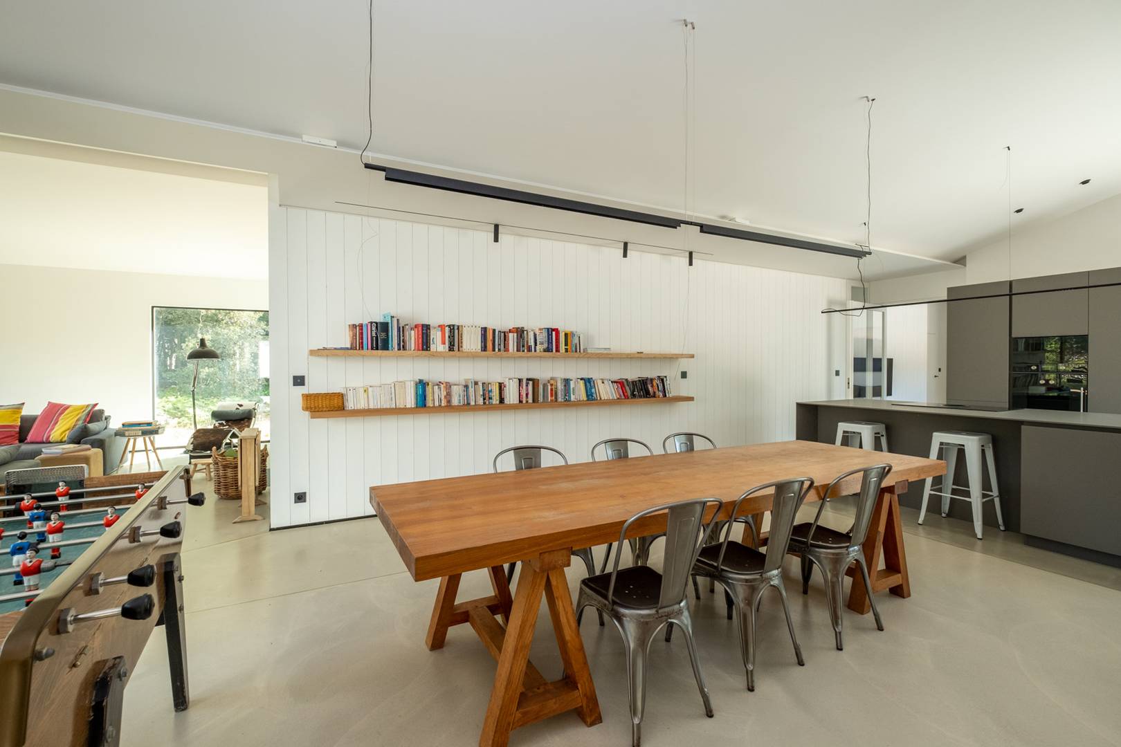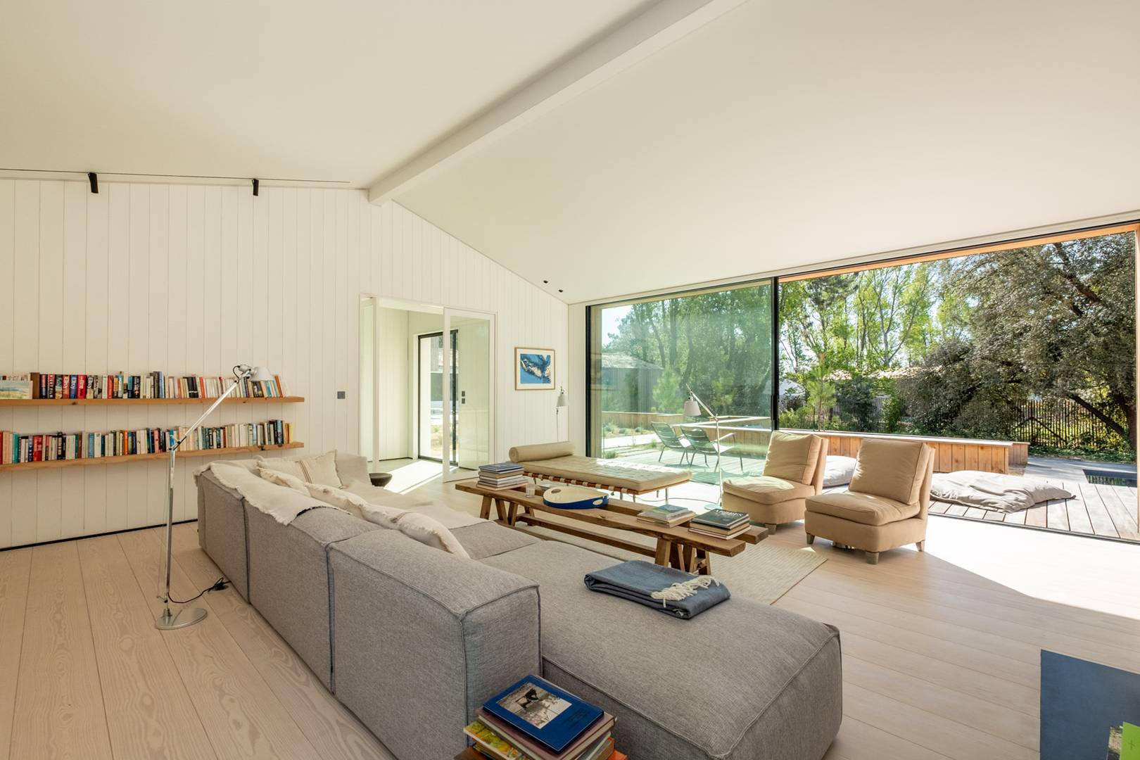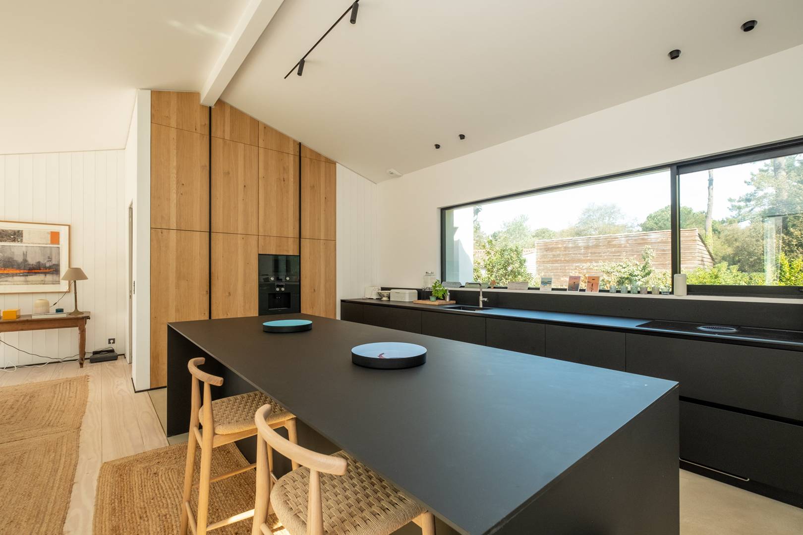 Dans un écrin de verdure à deux pas des commerces et de la plage, cette maison de famille neuve de 450m2 sur un terrain de 4 600m2 est un trésor d'architecture. Dessinée par ses propriétaires et l'architecte Christophe Ducharme, il s'agit d'une maison aux matériaux d'exception choisis dans le cadre d'une décoration raffinée et épurée toujours pour le plus grand confort de ses invités. Organisée autour d'une piscine de 25 mètres, elle enchantera ses invités.