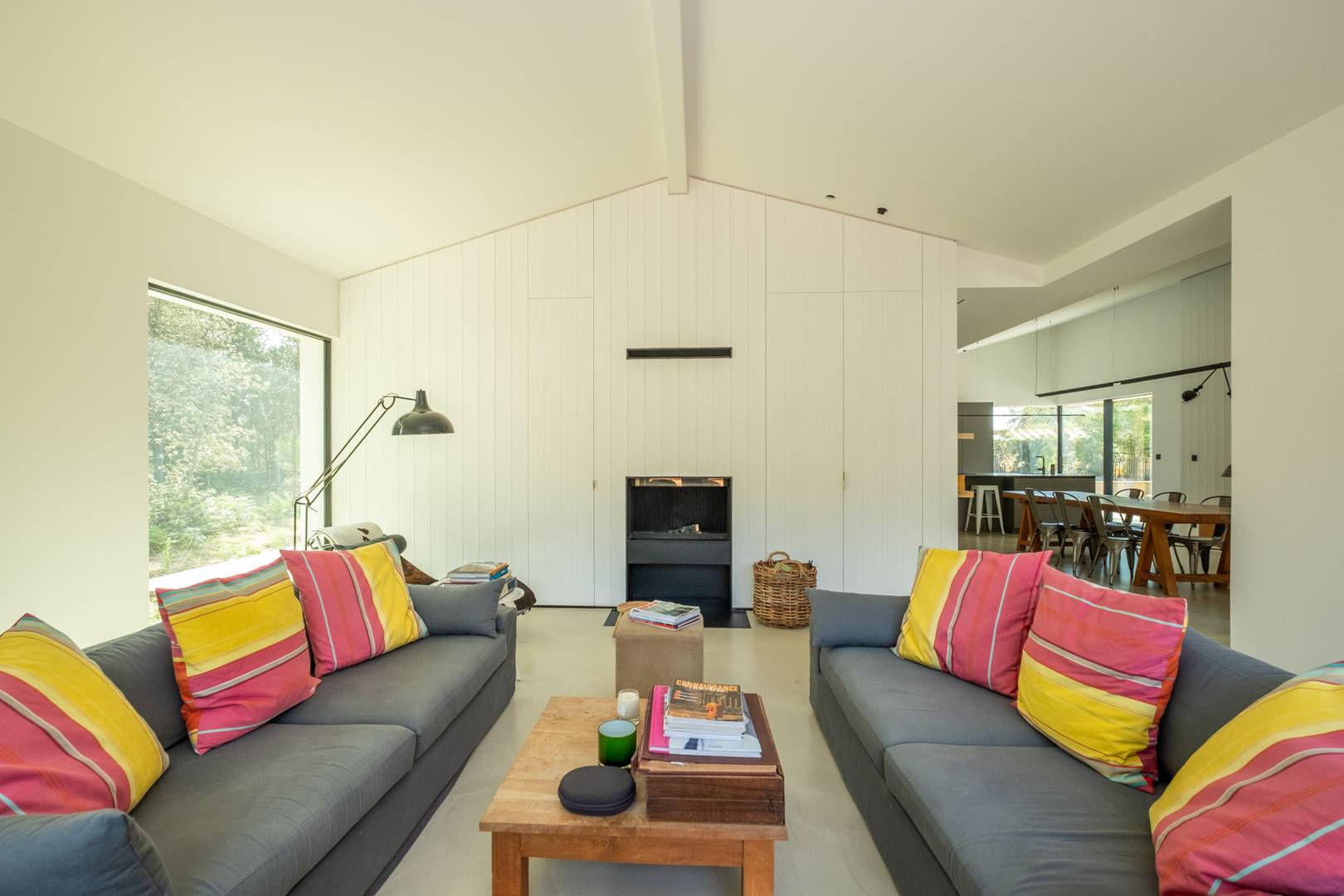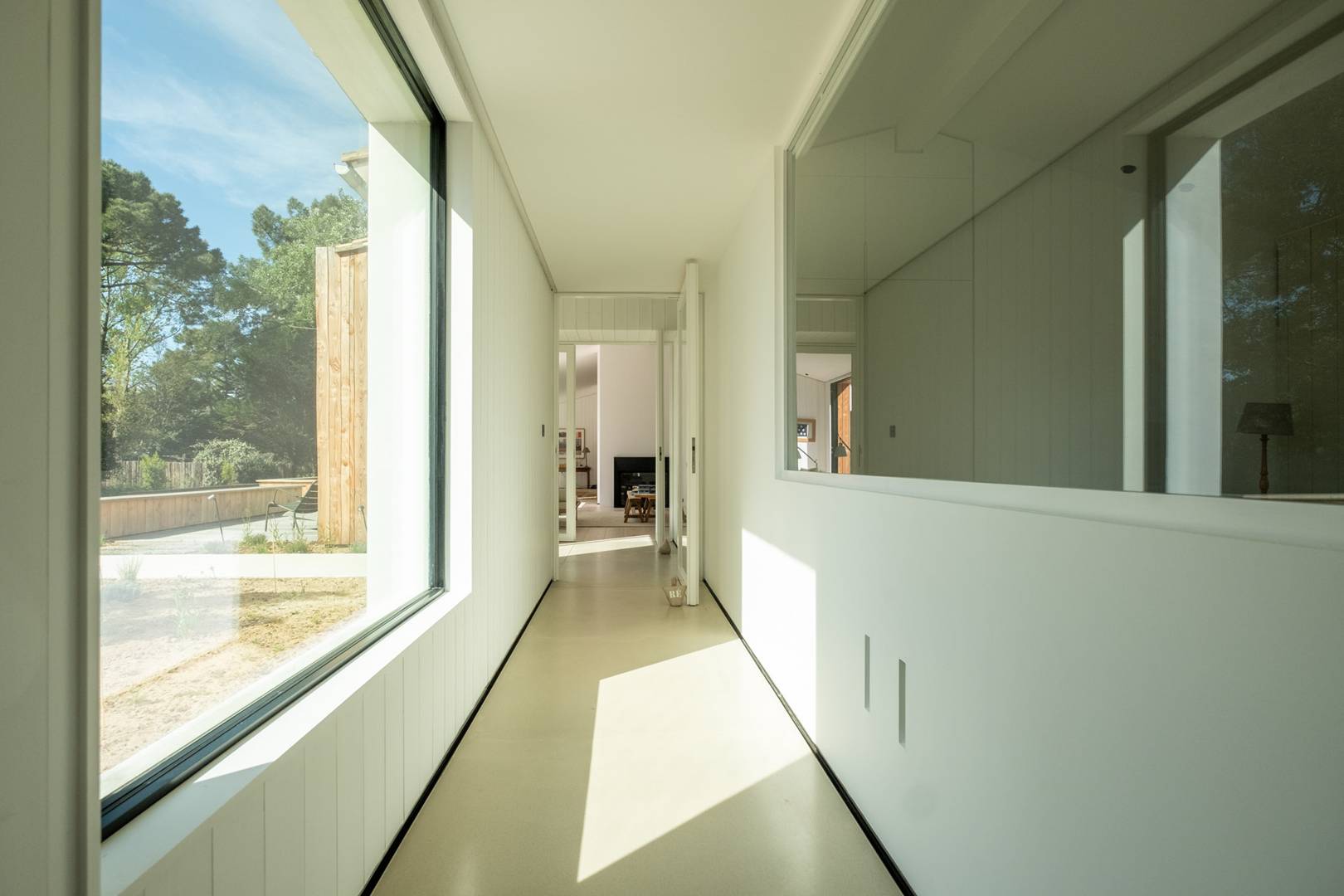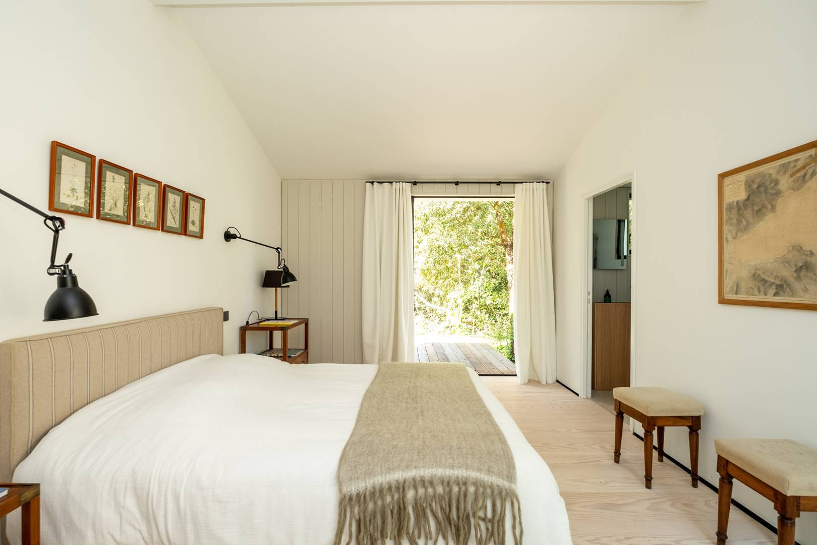 La maison dispose de 5 chambres doubles et 1 chambre enfant pouvant accueillir un total de 10 adultes et 4 enfants dont chaque chambre dispose de sa salle d'eau. La maison est articulée en deux maisons communicantes permettant une cohabitation idéale pour plusieurs familles. Baignée de lumière toute la journée, ses immenses baies vitrées vous immergent dans une sensation de sérénité invitant à la méditation.