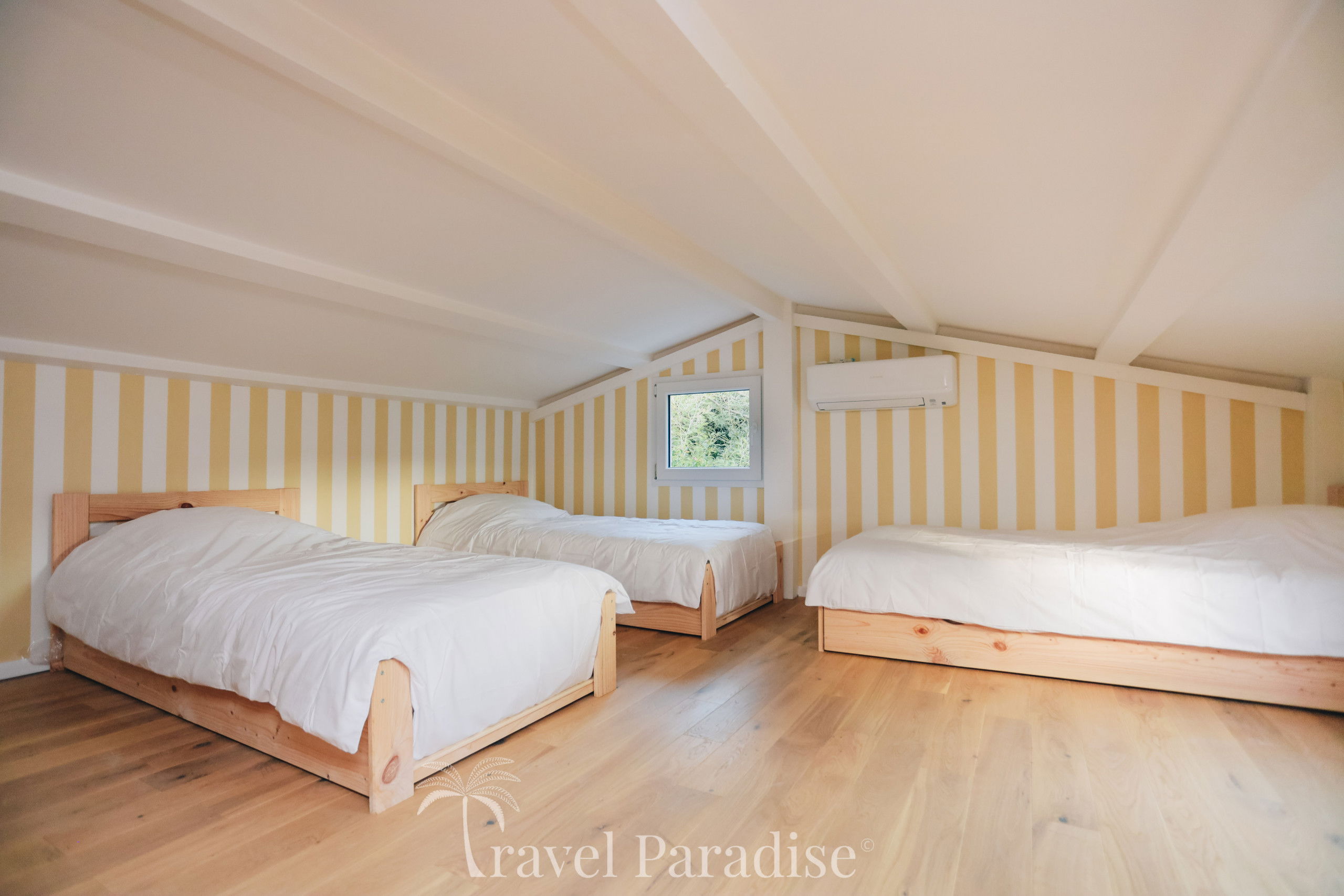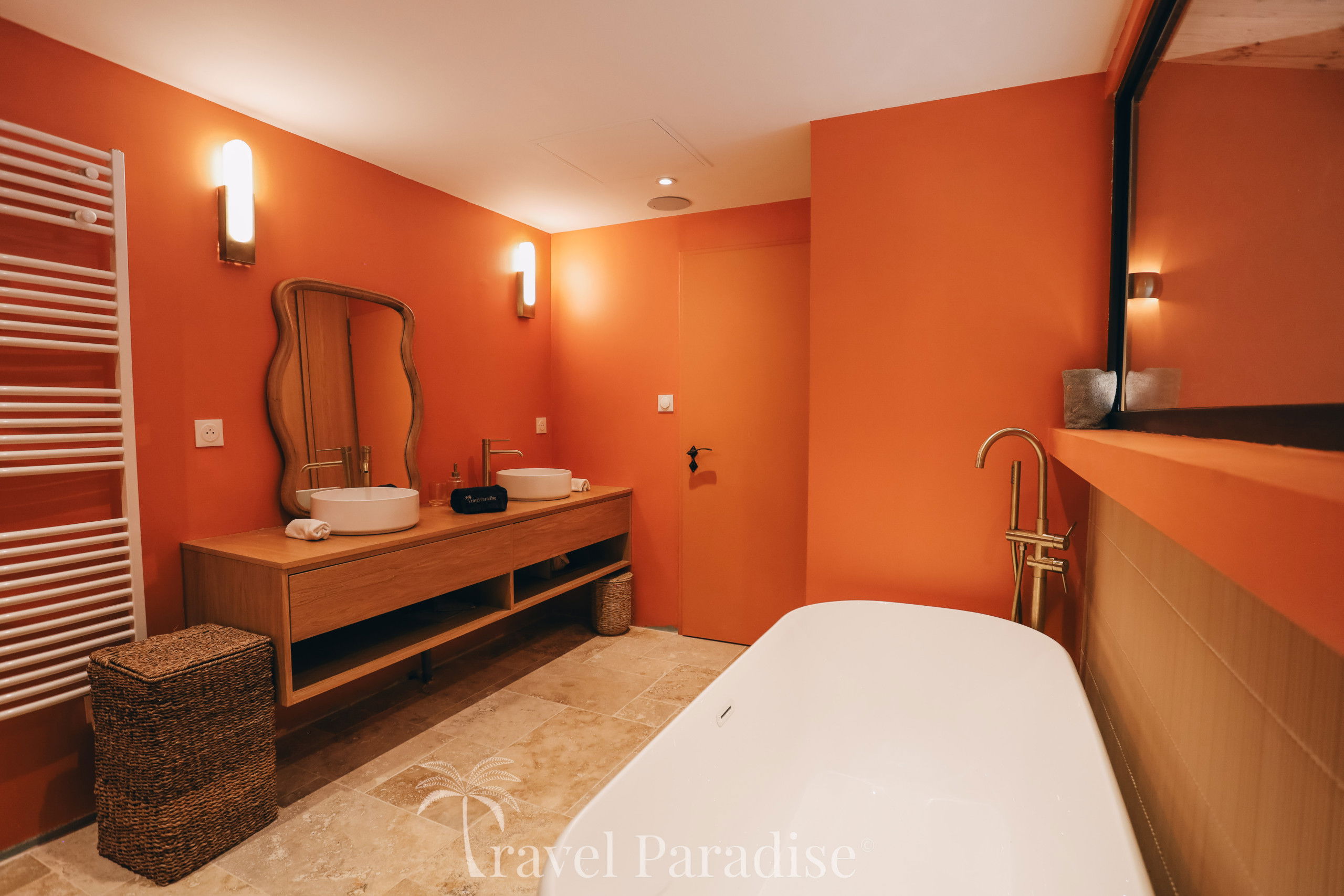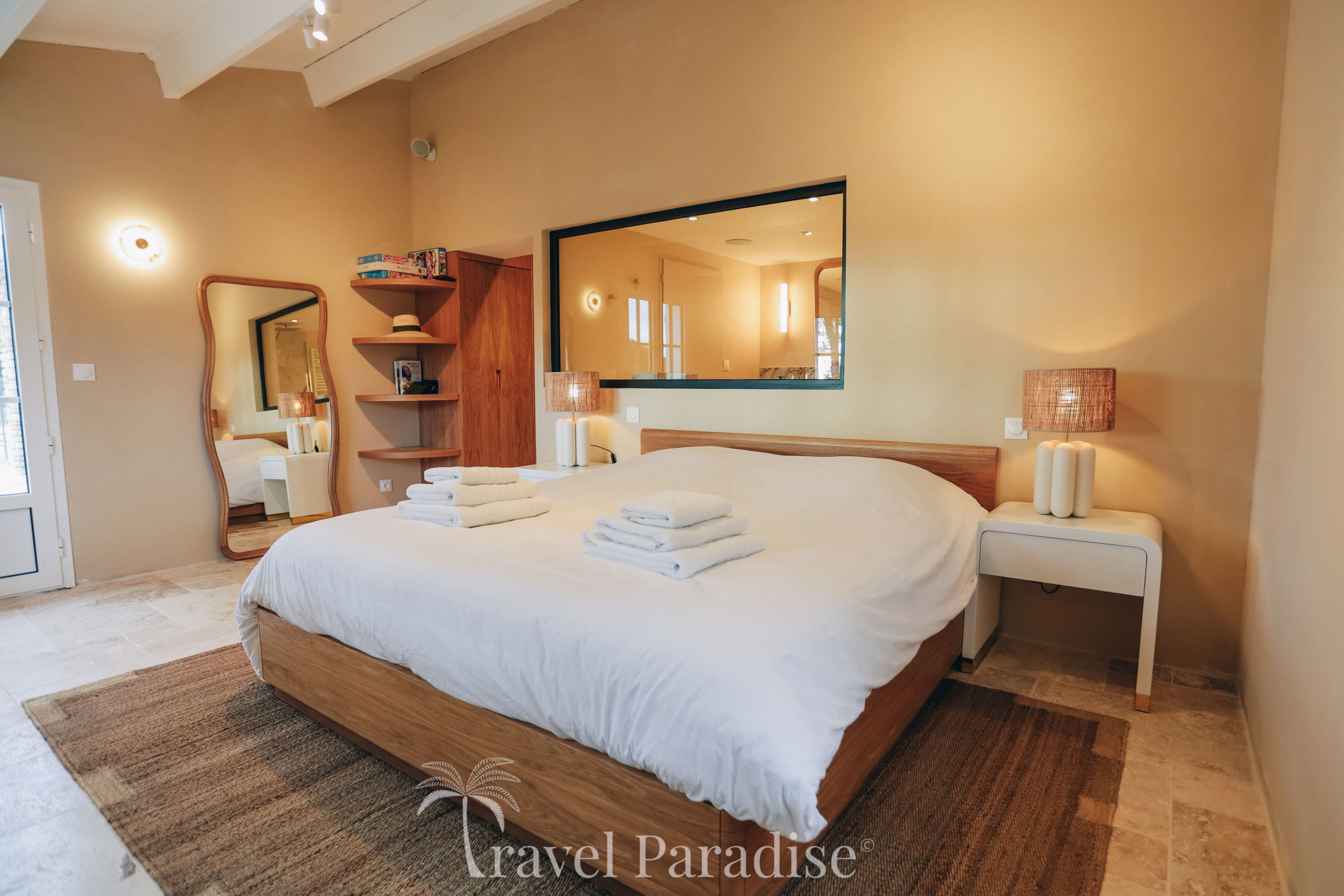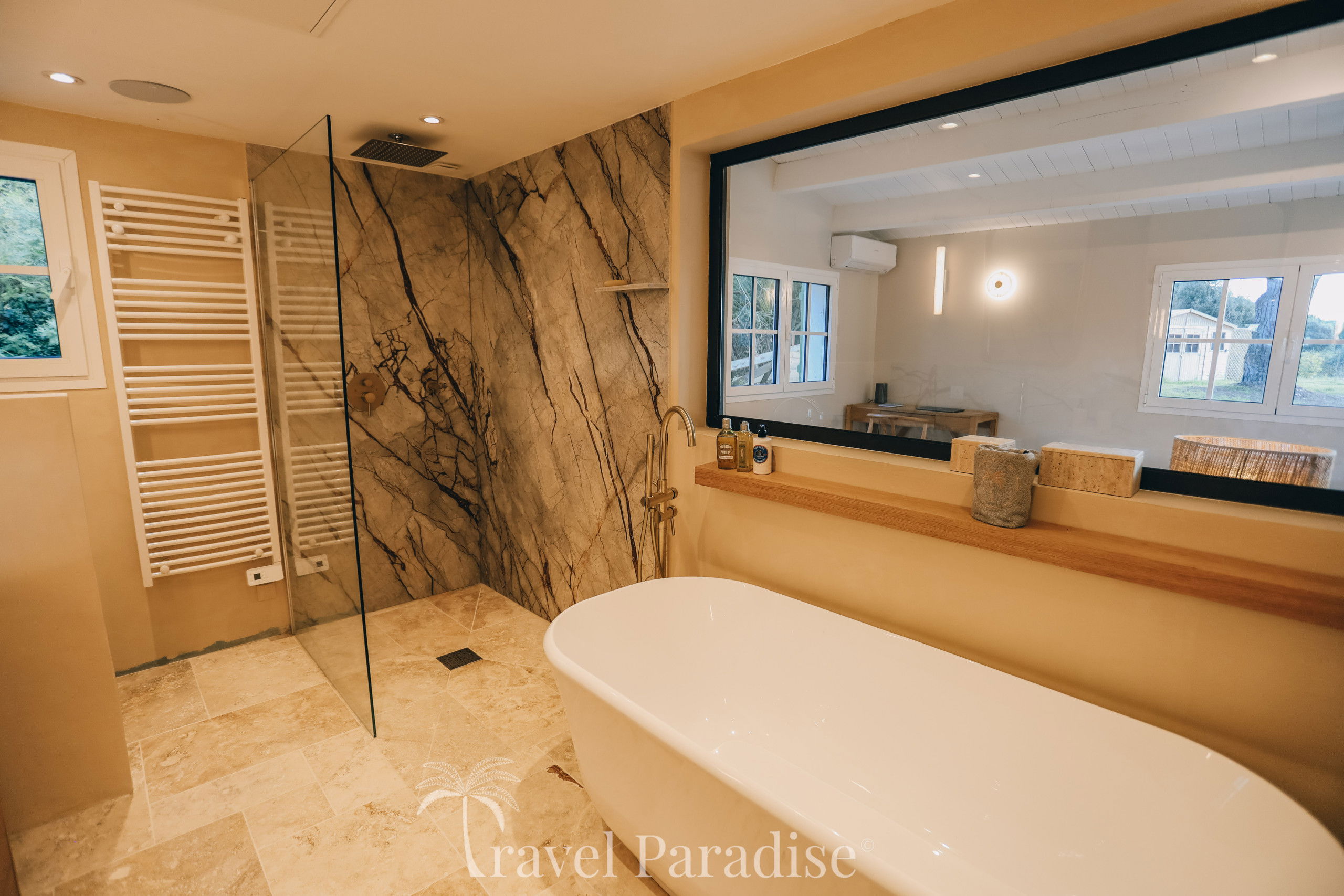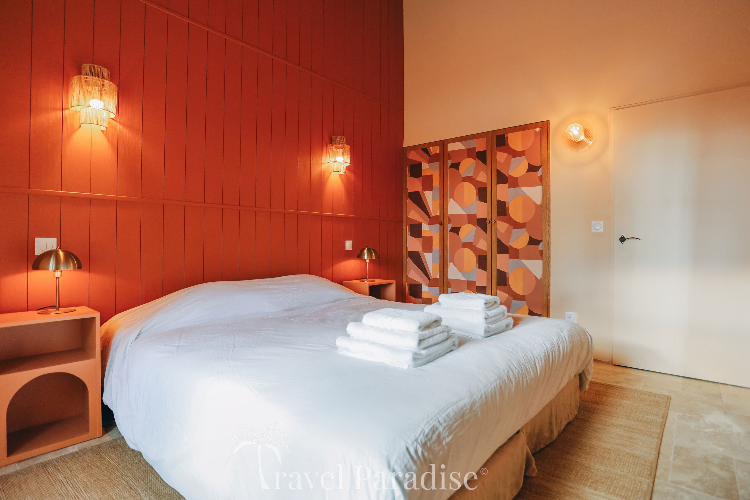 Dès votre arrivée, laissez-vous séduire par ses 7 chambres spacieuses, dont 3 suites parentales (2 climatisées), un dortoir climatisé pour enfants avec salle de bain (hauteur sous plafond 1m50), une chambre avec lit en mezzanine, et deux chambres partageant une salle de bain. Chaque espace a été conçu pour s’adapter à toutes les configurations, en famille ou entre amis.