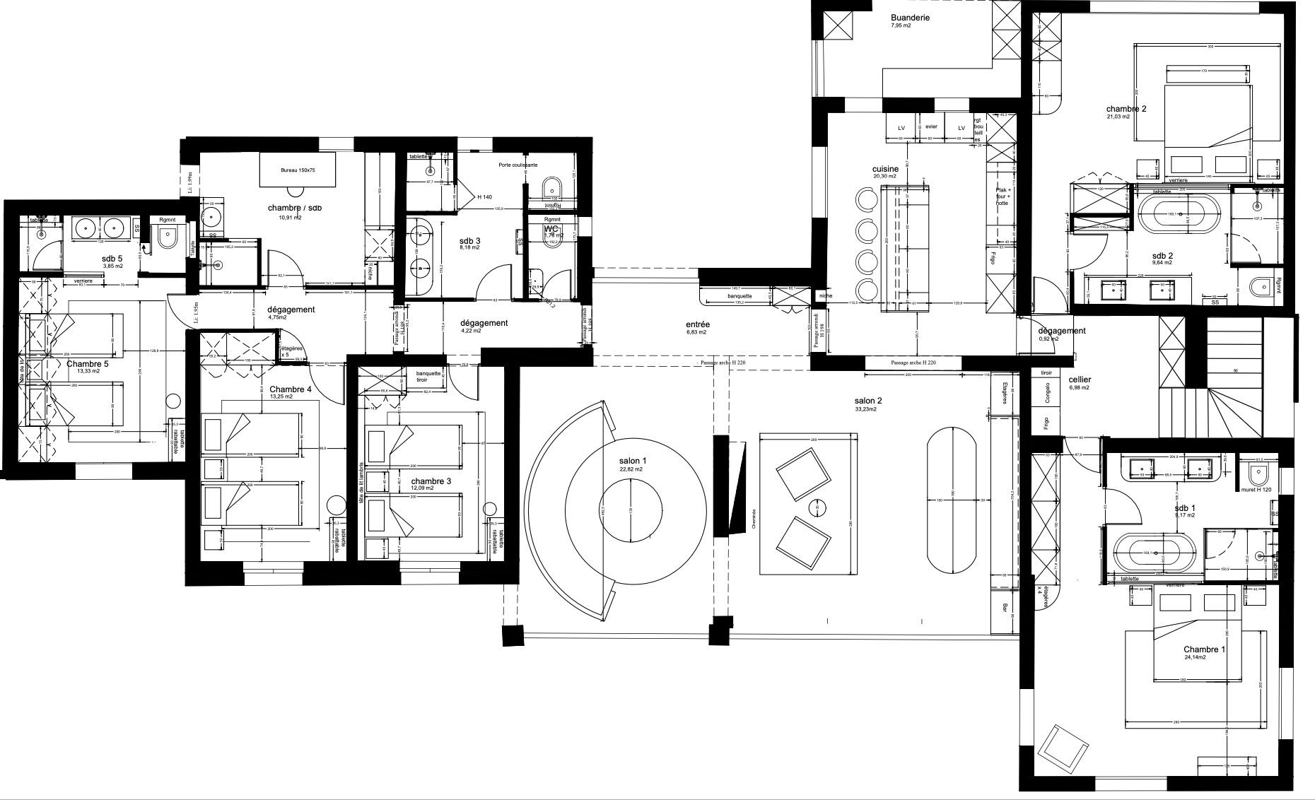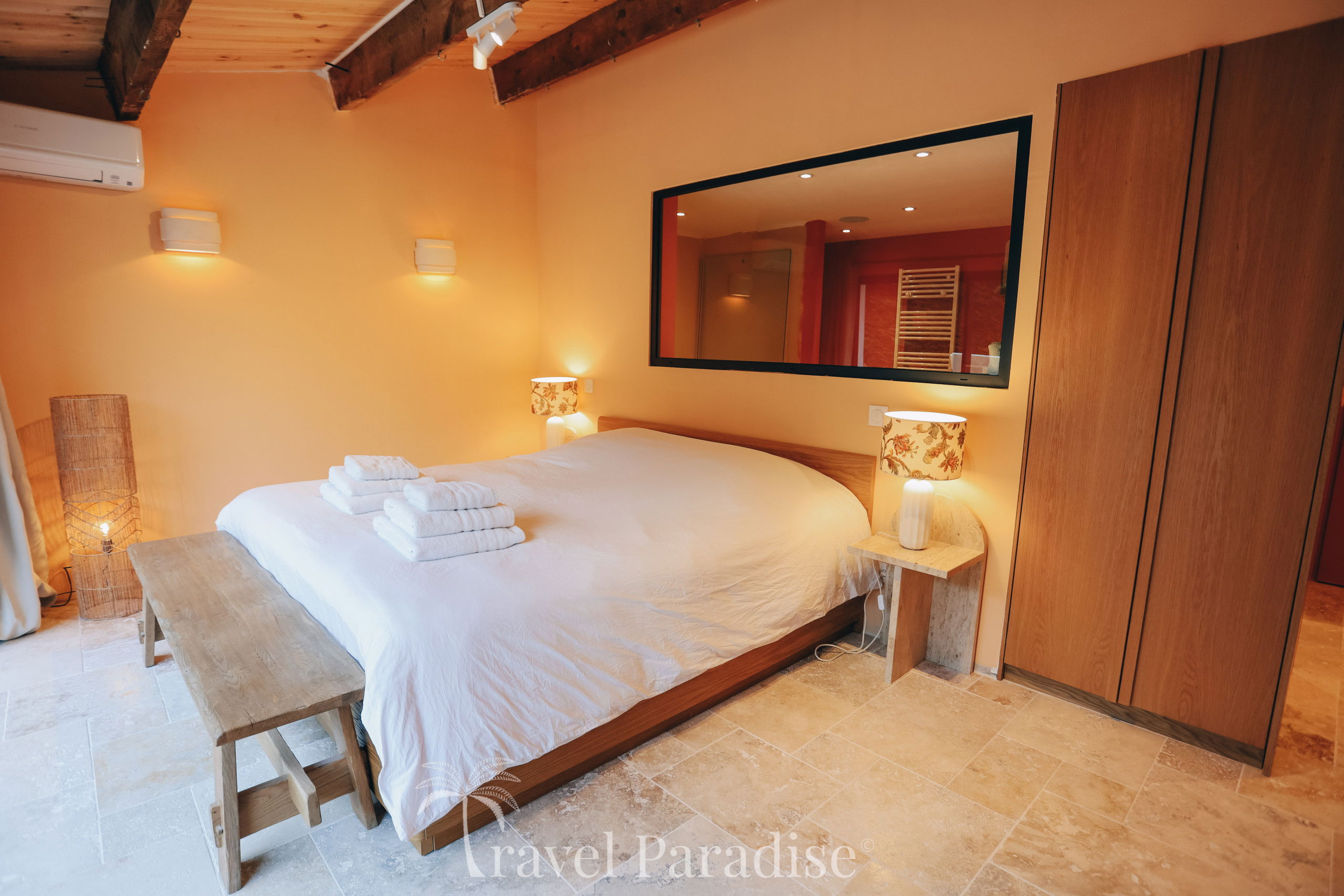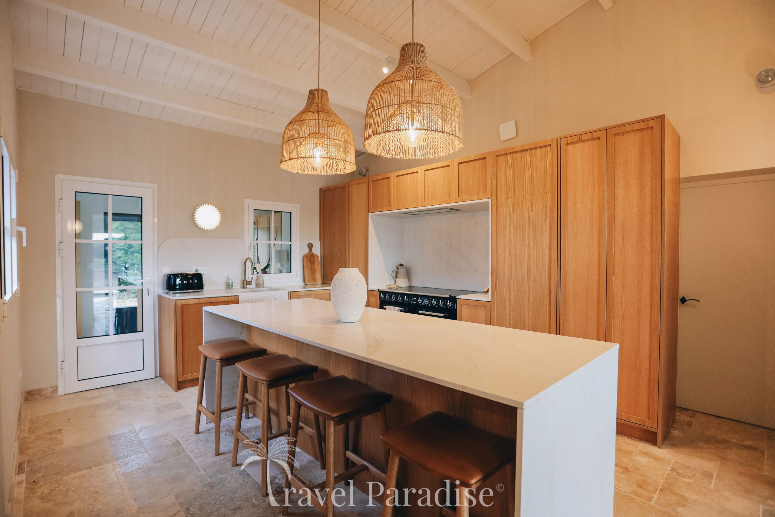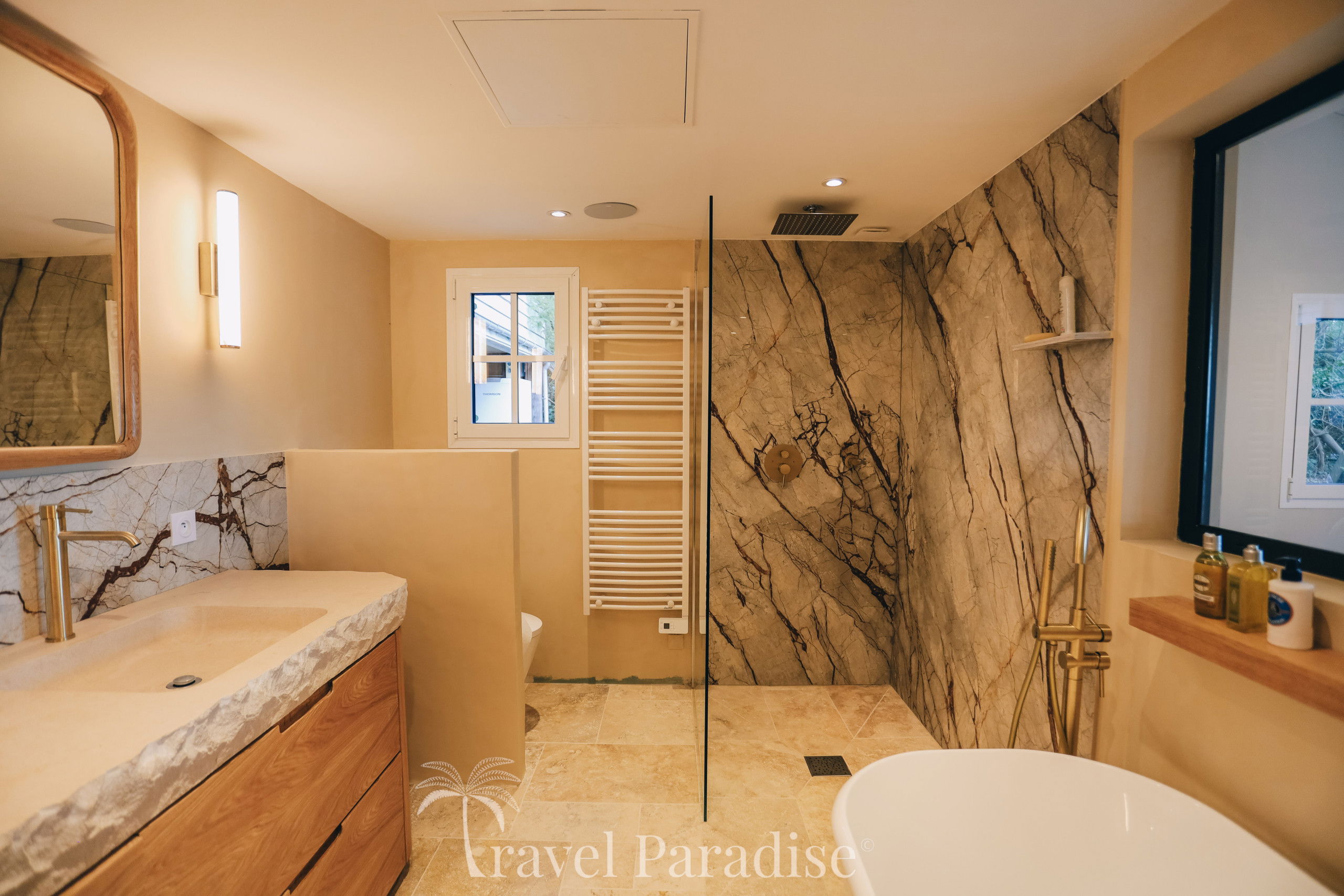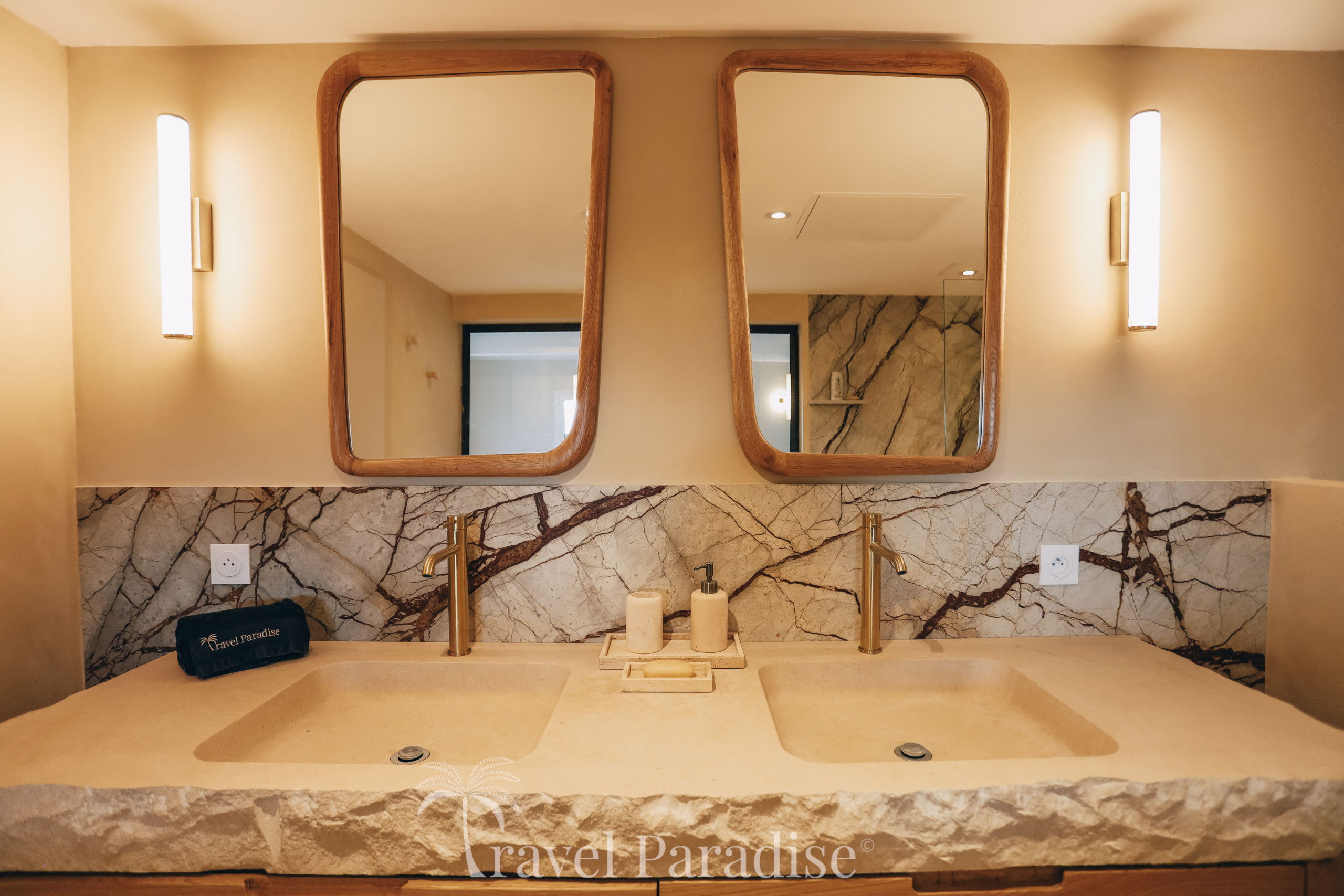 Dès votre arrivée, laissez-vous séduire par ses 7 chambres spacieuses, dont 3 suites parentales (2 climatisées), un dortoir climatisé pour enfants avec salle de bain (hauteur sous plafond 1m50), une chambre avec lit en mezzanine, et deux chambres partageant une salle de bain. Chaque espace a été conçu pour s’adapter à toutes les configurations, en famille ou entre amis.