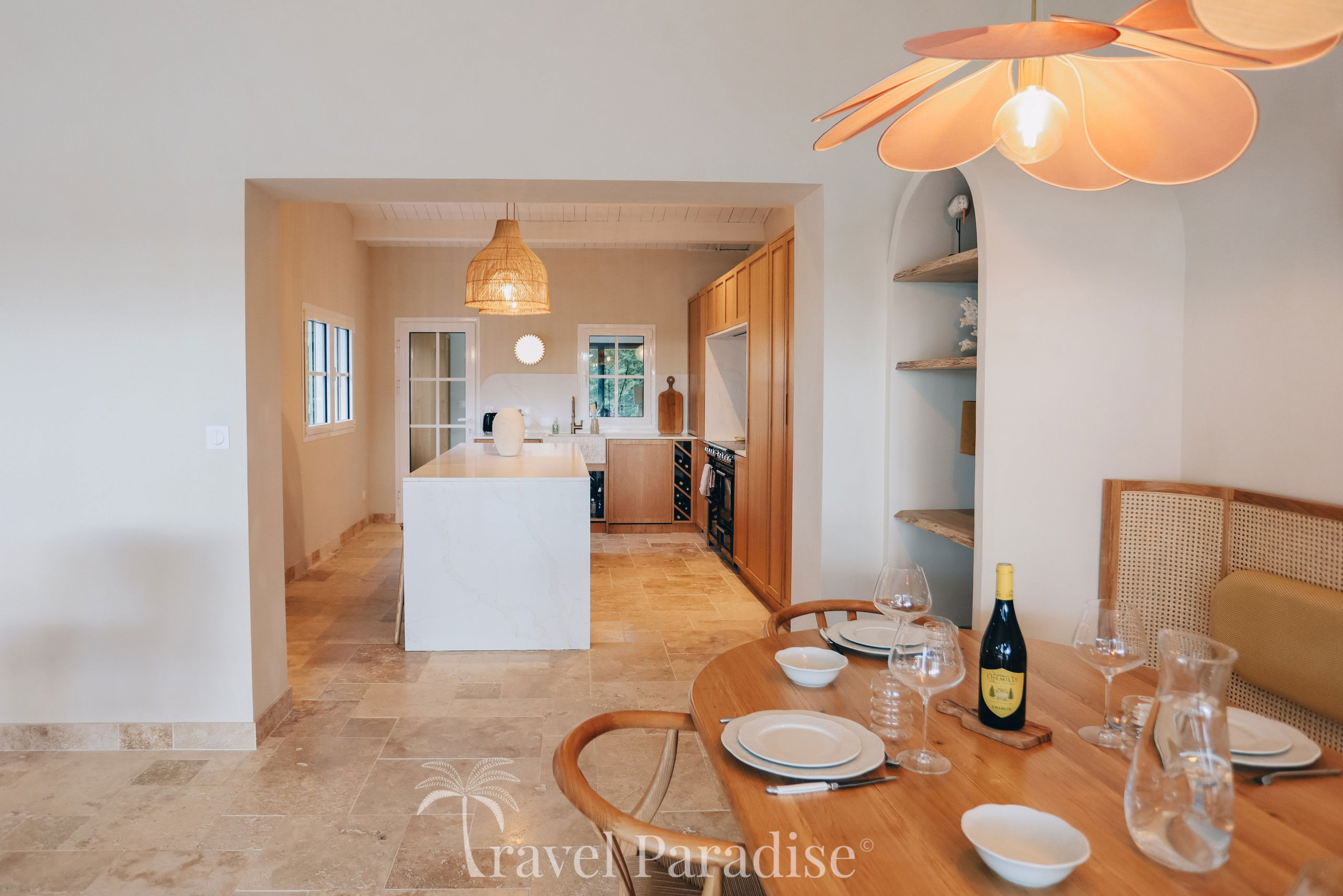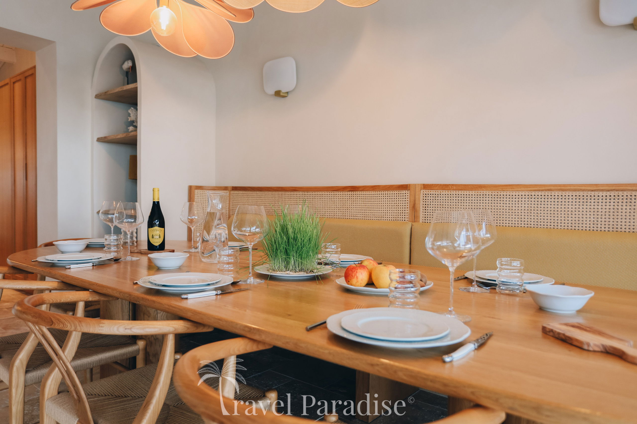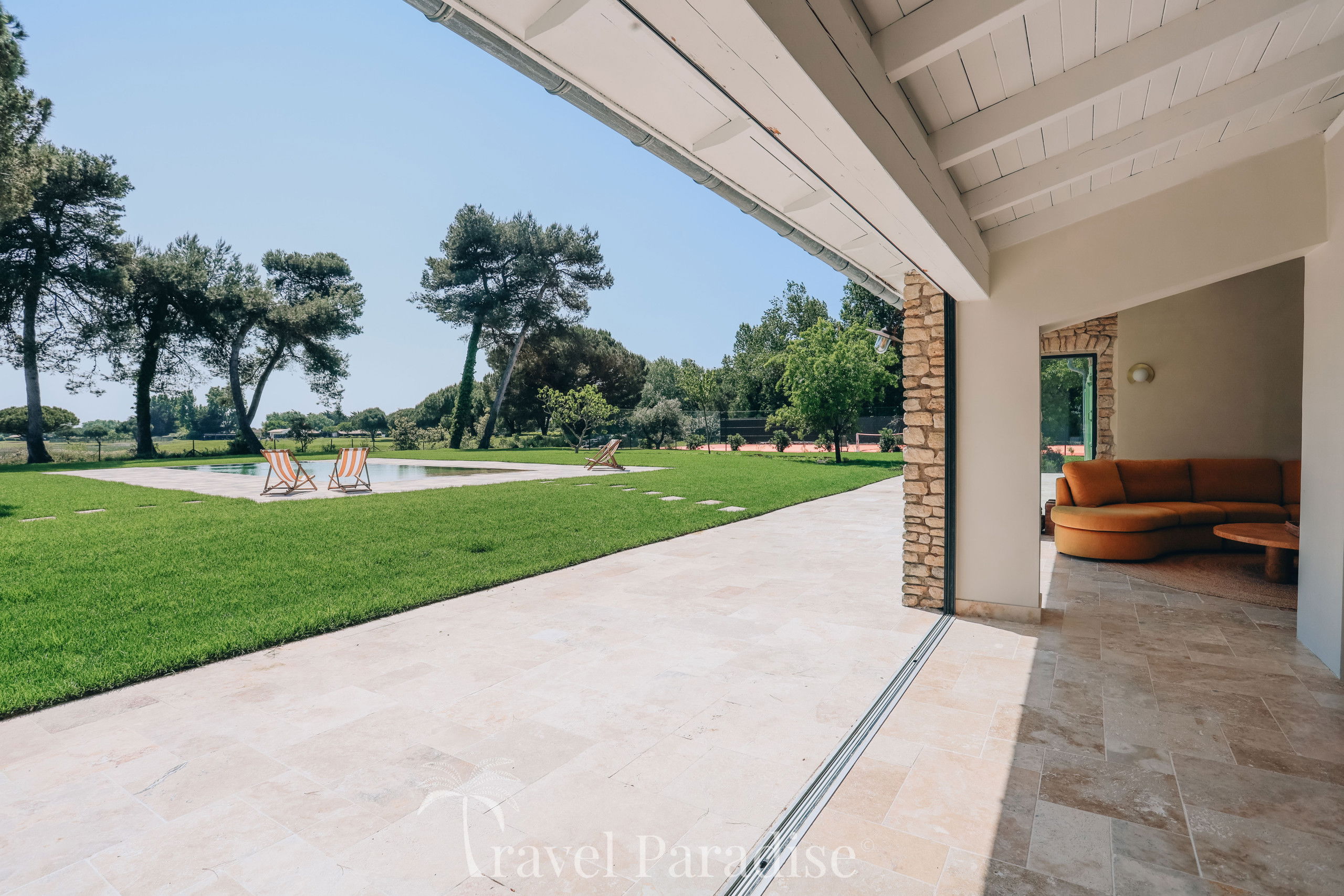 Plongez dans la piscine à débordement chauffée, dont l’effet miroir sublime le paysage environnant. Profitez des trois grandes terrasses aménagées pour des moments conviviaux sous le soleil rhétais. Pour les amateurs de bien-être, un hammam est également à votre disposition, - tandis que les passionnés de sport apprécieront le terrain de tennis privatif.
