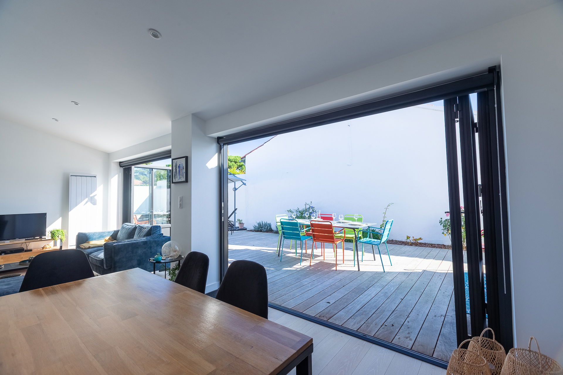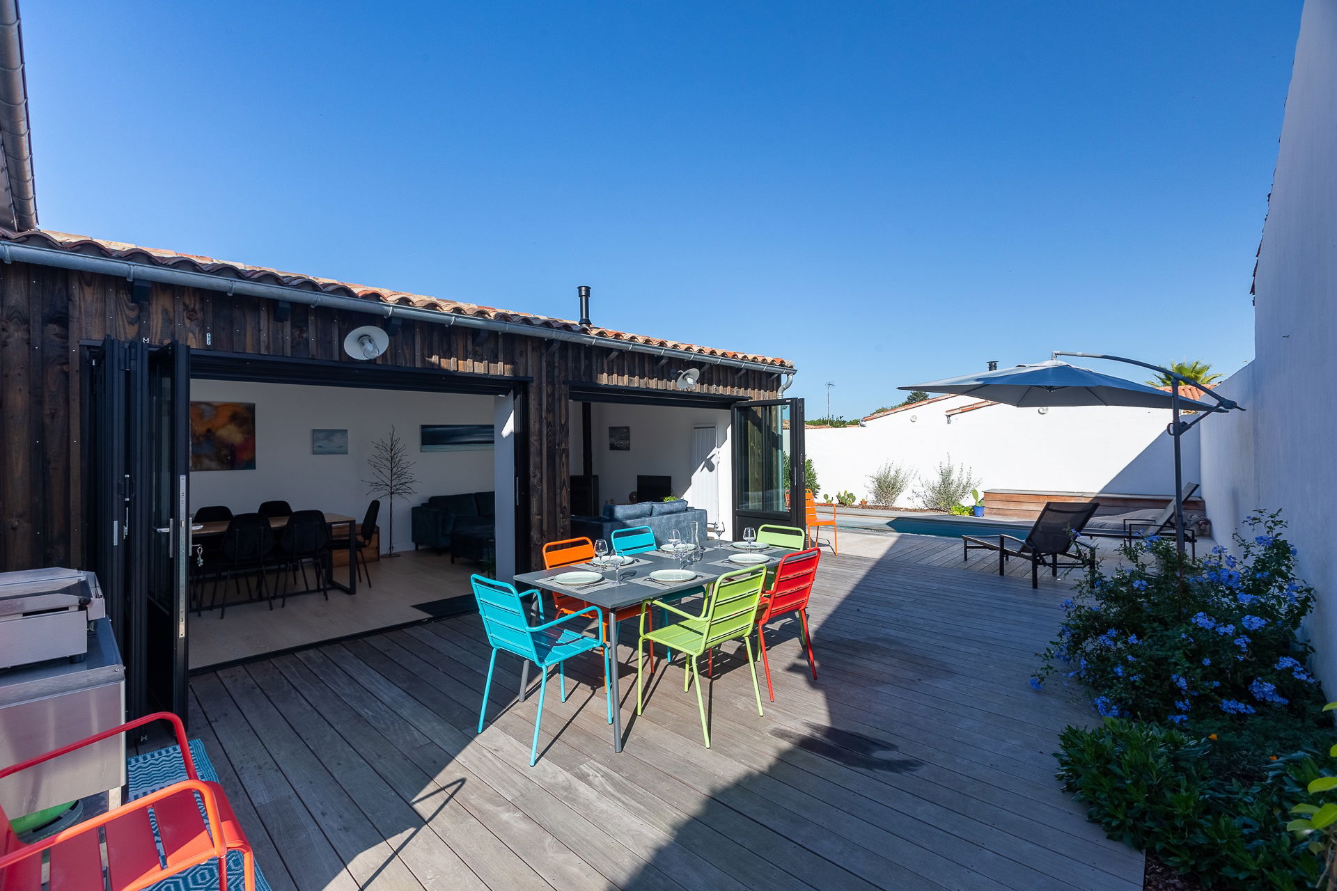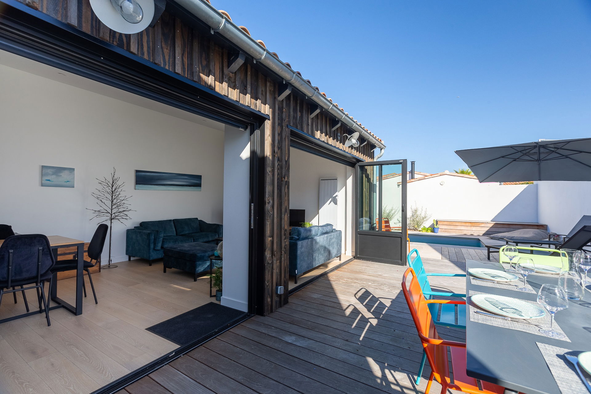 PLUME est une maison sur deux niveaux d'environ 100m2 avec piscine chauffée. Elle se compose d'une entrée avec coin lecture, une cuisine ouverte et entièrement équipée donnant sur la pièce principale baignée de lumière et s'ouvrant sur l'extérieur clos et végétalisé, La pièce principale vous offre deux sublimes canapés en velours pour ceux qui voudraient s'y reposer quelques instants, une table pouvant accueillir six convives aisément et une ouverture complète sur le jardin et la piscine chauffée.