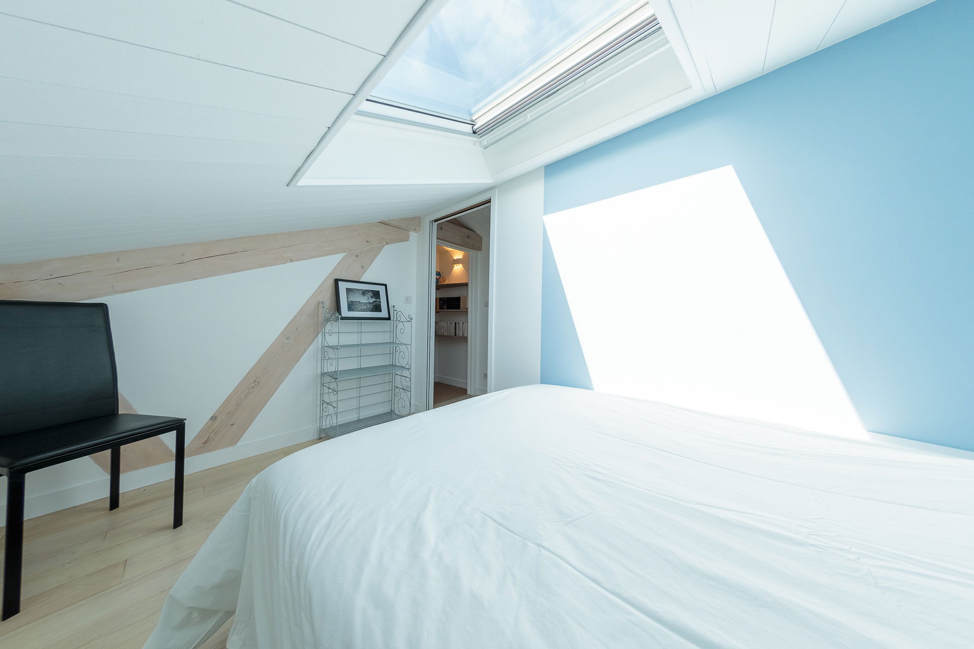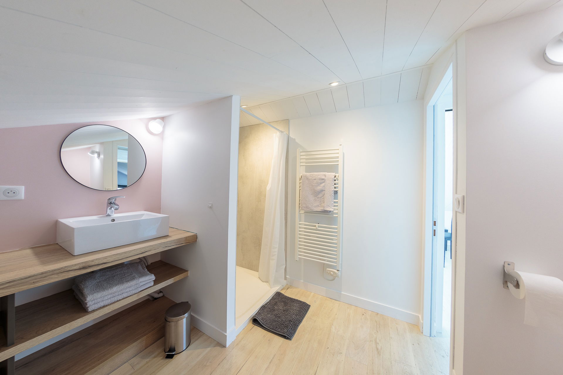 A l'étage vous trouverez deux chambres mansardées avec un lit 140 et deux lits jumeaux de 80cm (bas de plafond mais très cocooning), une salle d'eau et un wc.