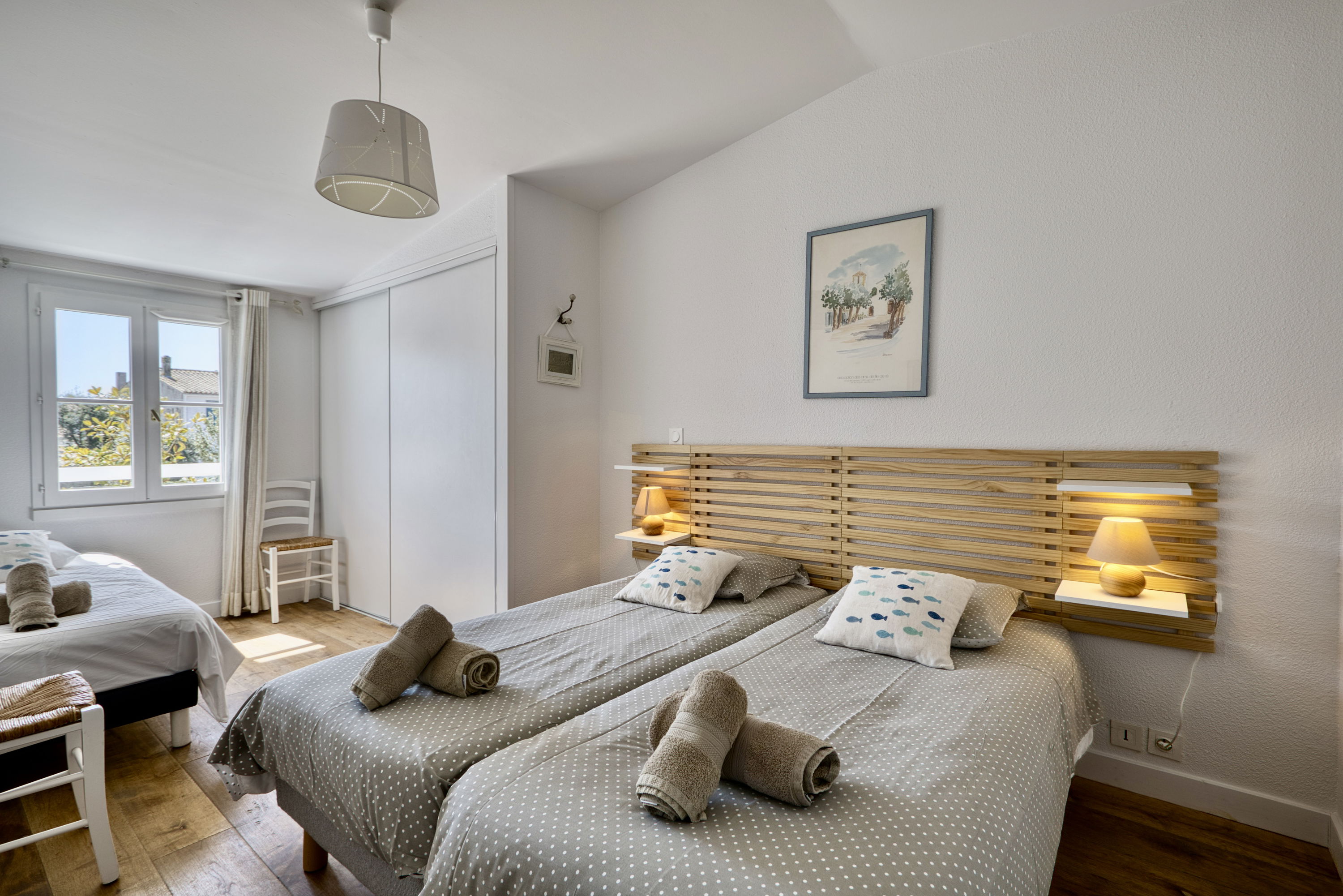 Au premier étage, le palier distribue une chambre avec lit double (160x200cm - literie neuve), une chambre avec trois lits simples, une salle d'eau ainsi qu'un WC séparé.