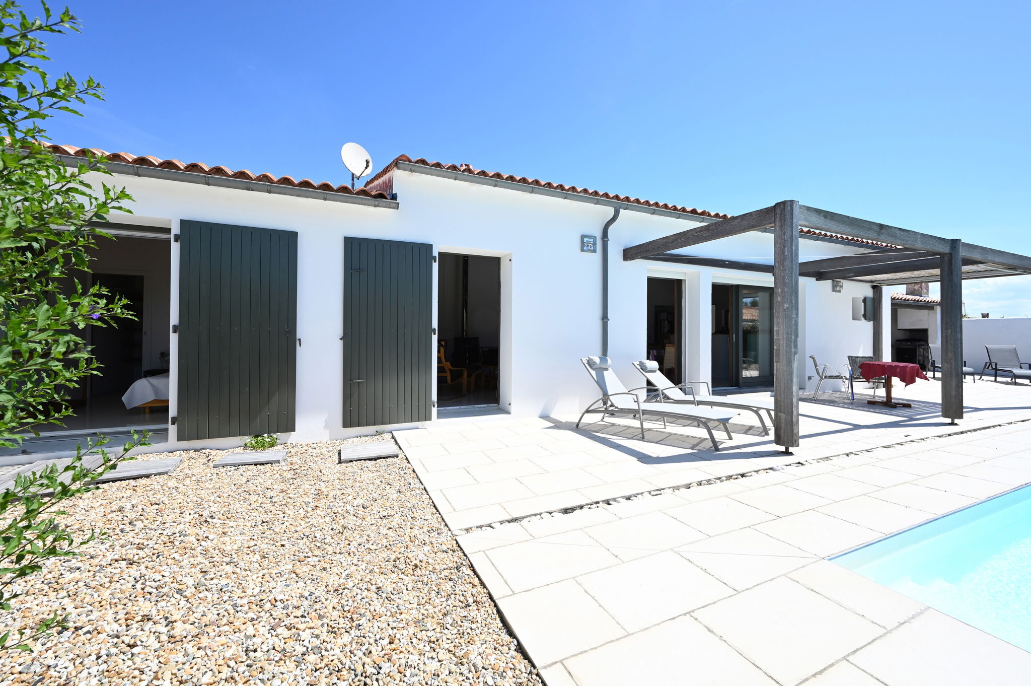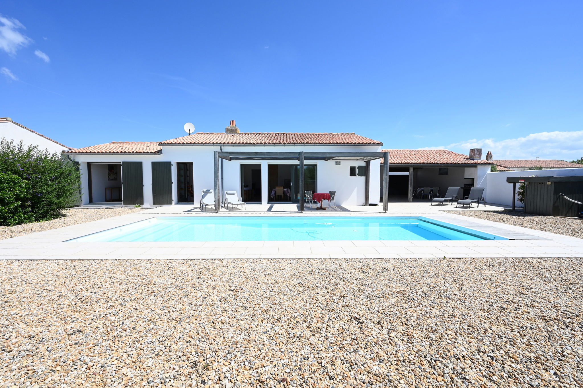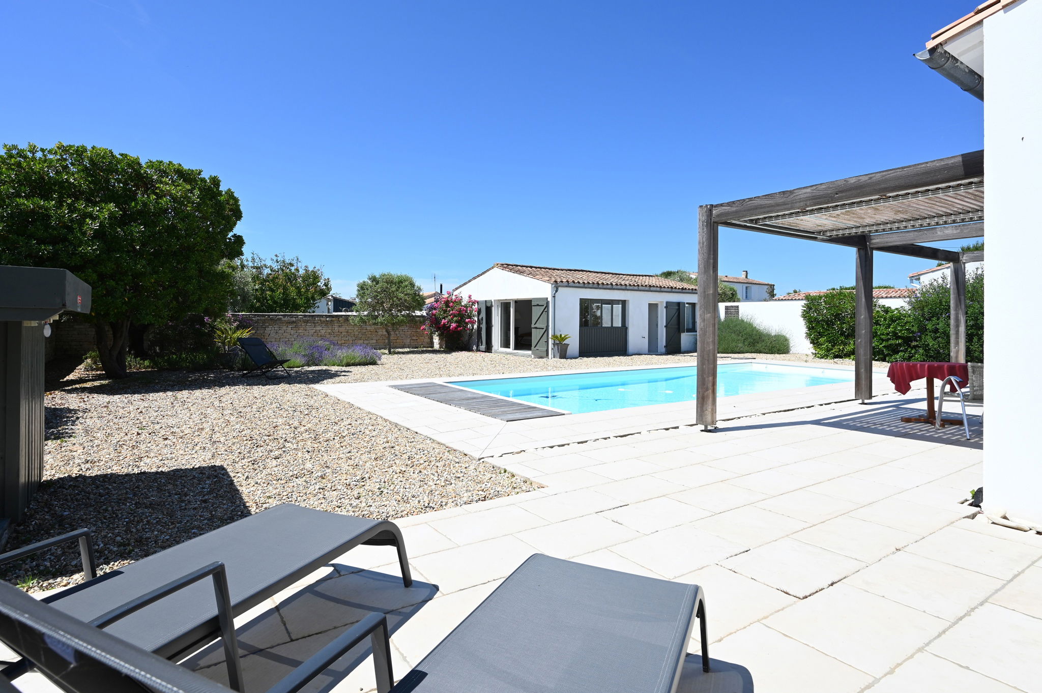 Exposition plein sud sur le terrain, la piscine est chauffée uniquement de Juin à septembre.