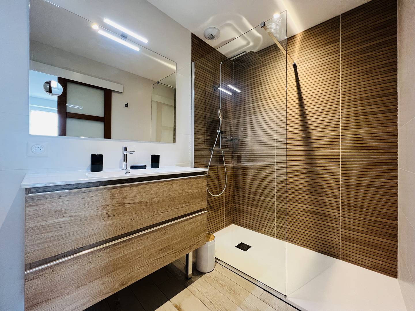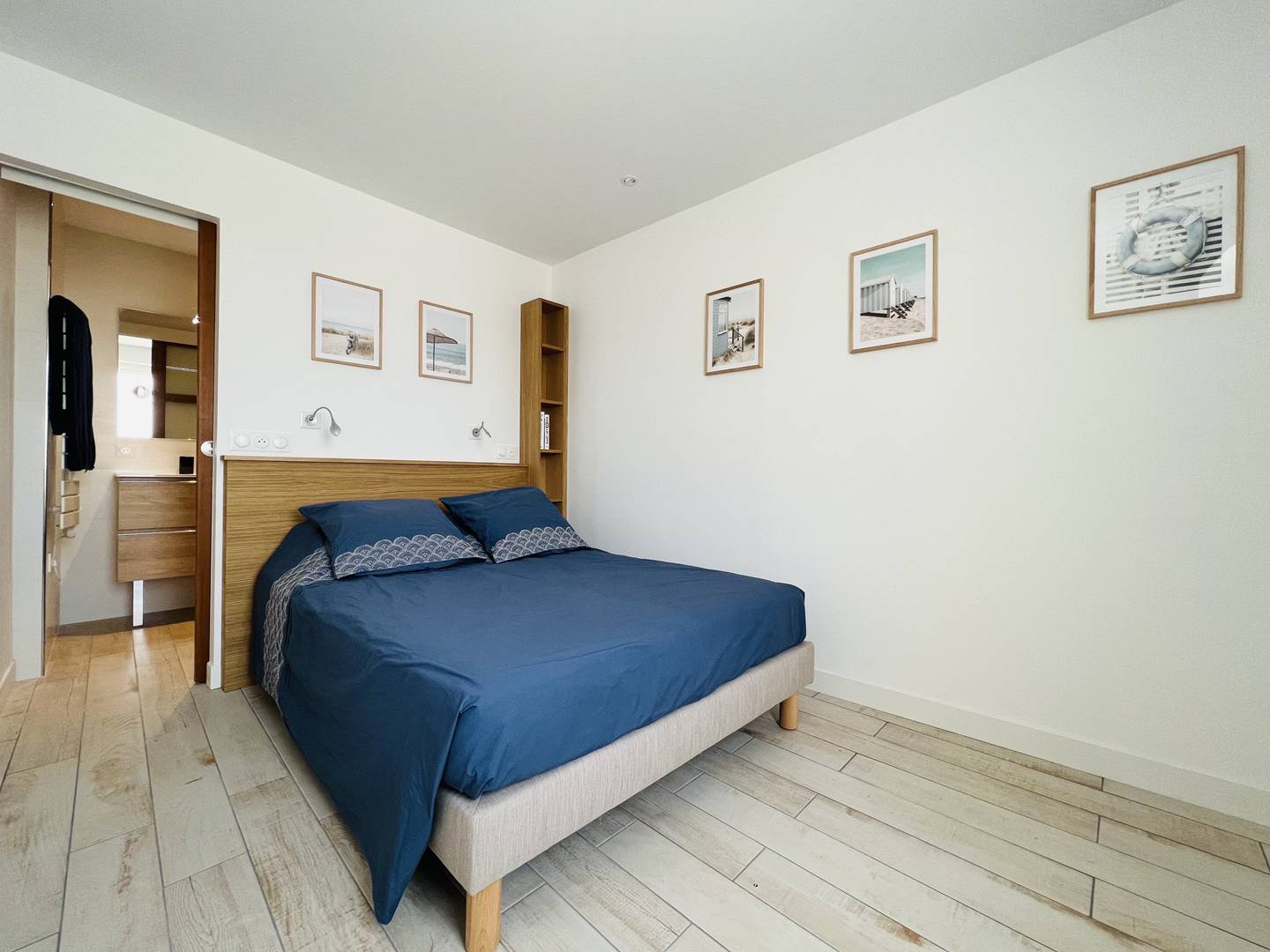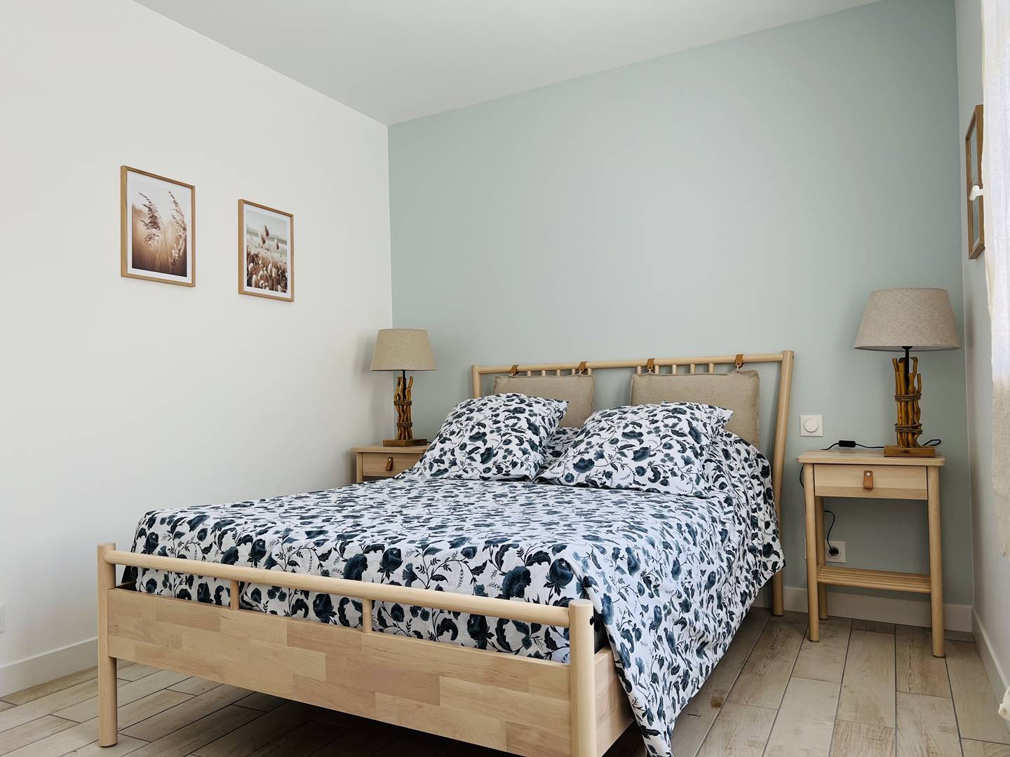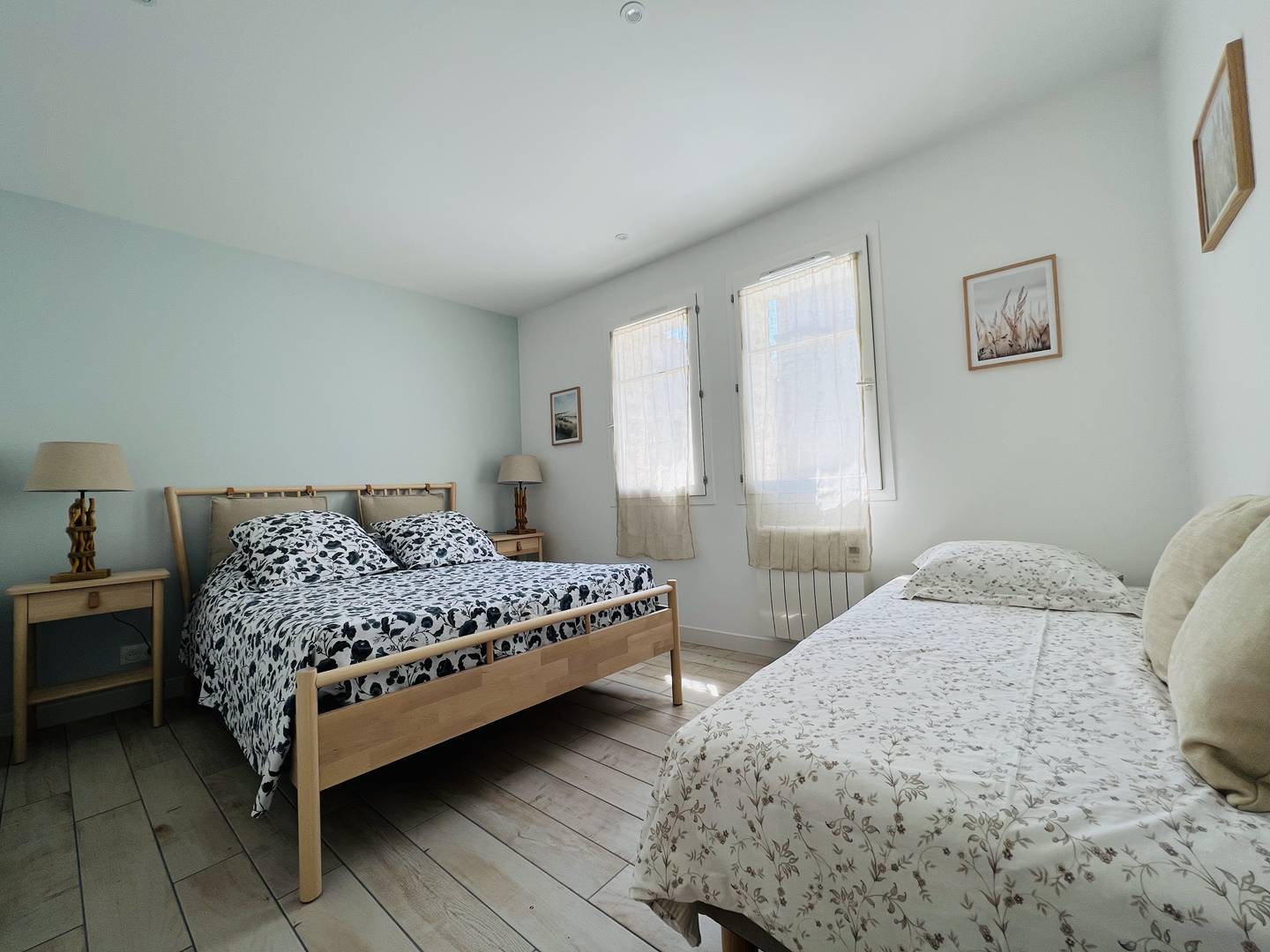 L'espace nuit à l'étage comprend deux chambres et deux salles d'eau. Une chambre est équipée d'un lit double 140x200, et une chambre d'un lit double de 140x200 et d'un lit simple de 90x200.