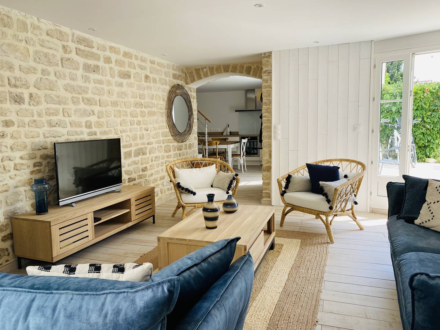 Venez vous ressourcer en séjournant en famille ou entre amis dans cette agréable maison pleine de charme avec ses murs de pierres sèches idéalement située à deux pas de la Place Antioche à Sainte-Marie-de-Ré ! Vous apprécierez le raffinement de sa décoration et la qualité et le confort des équipements. De grands canapés, une belle cuisine aménagée et un espace repas vous invitent à partager des moments de convivialité.